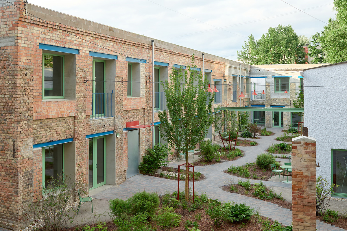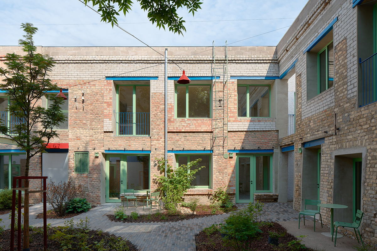 Abordat din perspectiva reutilizării adaptive, proiectul cuprinde o fostă casă de raport, construită în anii 1900 în varianta locală a stilului Art Nouveau, care a fost atent renovată, și două foste clădiri industriale joase adăugate mai târziu, la rândul lor recondiționate și adaptate funcției de locuire. Elementul central al ansamblului este, însă, curtea interioară, transformată într-o grădină urbană contemporană, care întregește atmosfera și susține convivialitatea și calmul.