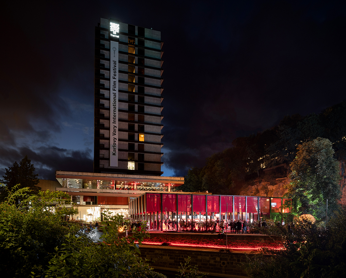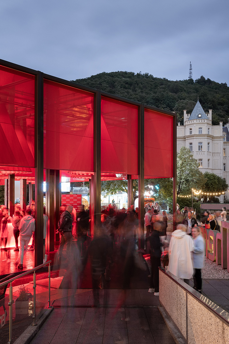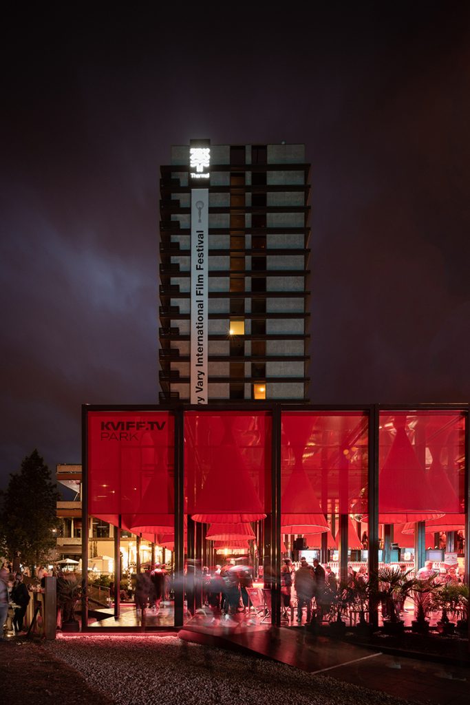 Creat de biroul CHYBIK + KRISTOF, cu o bogată experiență în realizarea de structuri din module prefabricate, și inițial proiectat pentru ediția 2022 a Festivalului Internațional de Film Karlovy Vary (KVIFF), pavilionul KVIFF.TV Park s-a bucurat de un mare succes în rândul vizitatorilor, motiv pentru care el a revenit, într-o variantă actualizată, și în cadrul ediției de anul acesta, desfășurată între 30 iunie și 8 iulie. Inspirată de aspectul arhitecturii balneare ce o înconjoară, structura multifuncțională a constituit, pentru a doua oară, inima evenimentului, loc de întâlnire cu actori și regizori, spațiu de socializare și zonă de relaxare.