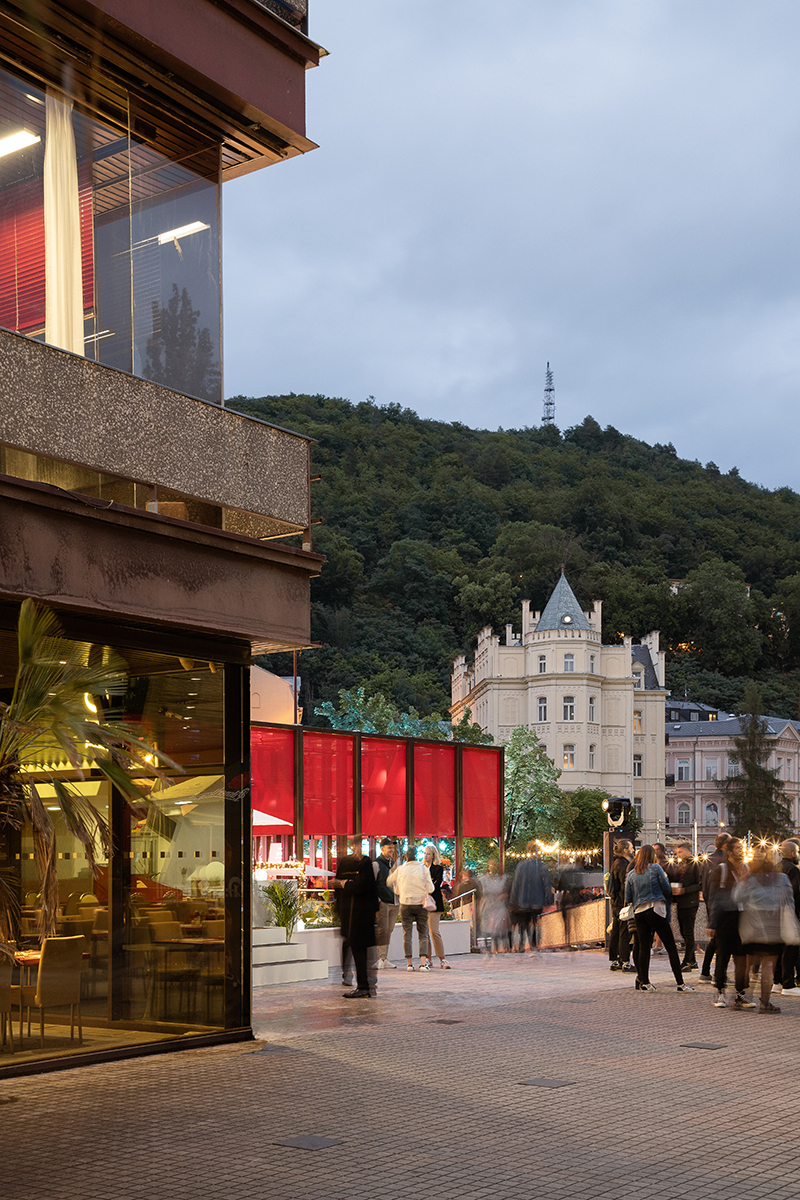 KVIFF.TV Park devine o parte integrantă a festivalului, îmbogățind atmosfera și armonizându-se cu contextul local. Conceptul modular permite o folosire eficientă a spațiului pe durata evenimentului, fără a necesita intervenții majore asupra structurii, și fără a afecta imaginea de ansamblu a orașului. Ondřej Chybík, arhitect, CHYBIK + KRISTOF