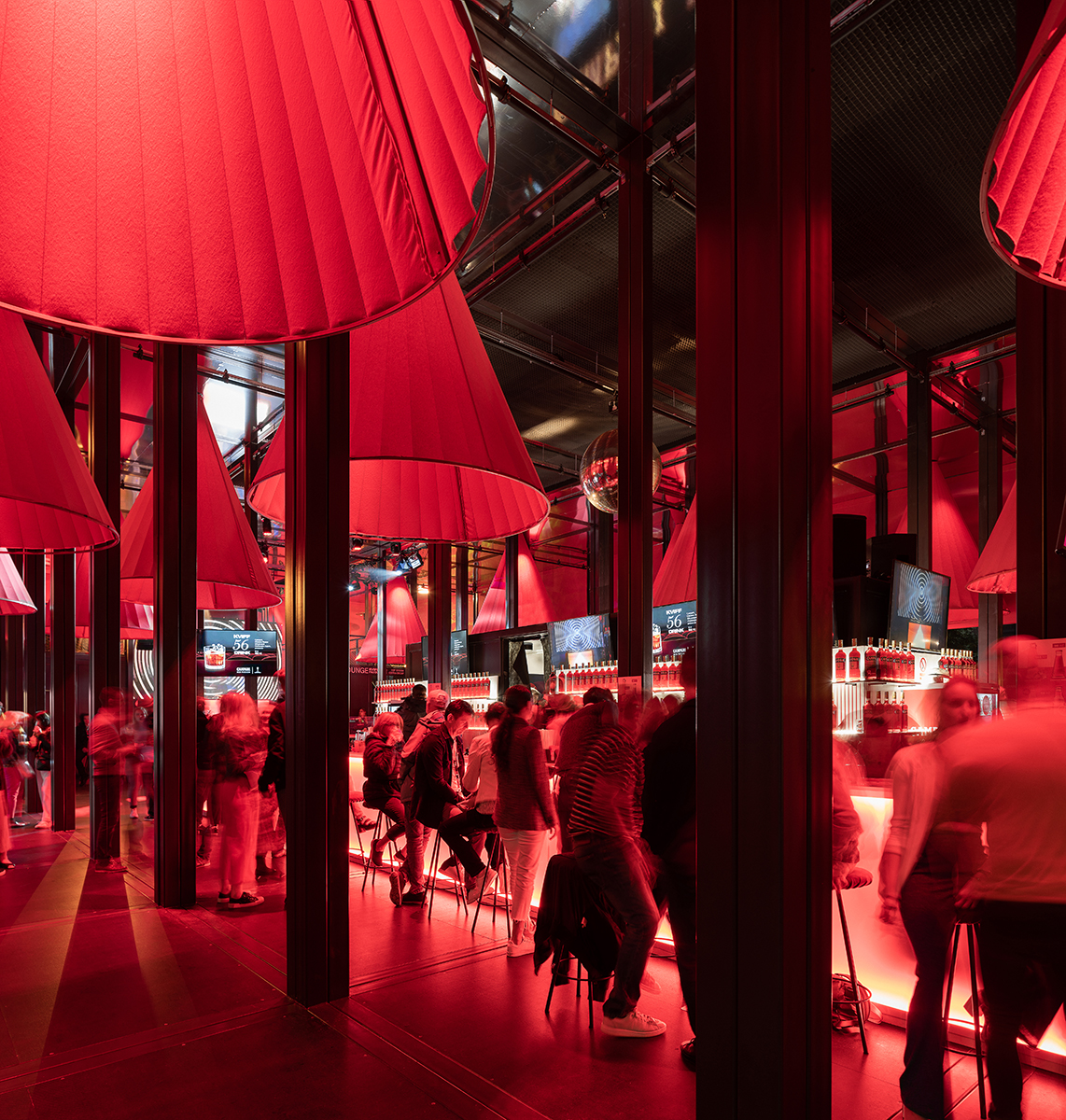 De asemenea, arhitecții au acordat o atenție deosebită organizării interiorului în mai multe zone funcționale, oferind toate soluțiile necesare pentru o bună desfășurare a evenimentului. Printre acestea s-au numărat zone de lounge pentru partenerii festivalului, un generos bar central cu scenă, precum și o galerie la nivelul superior, cu zone VIP. Astfel, pavilionul a oferit un spațiu primitor pentru întîlniri, relaxare și spectacole de muzică, ușor de transformat într-o zonaă de bar animate, cu ring de dans, pe timp de noapte. Raportul bine gândit dintre interior și exterior a asigurat menținerea unei ventilații optime, creând o atmosferă confortabilă pentru vizitatori.