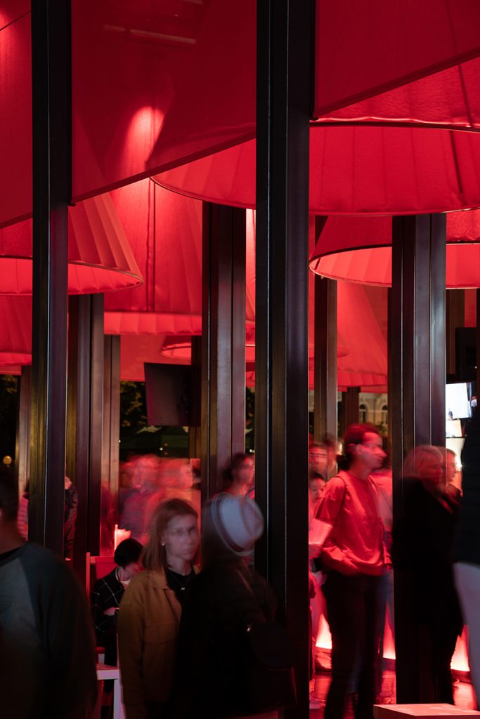 Față de anul trecut, cea mai importantă schimbare adusă structurii constă în corpurile de iluminat, dotate cu tehnologie LED pentru ajustarea facilă a intensității și culorii luminii, pe care arhitecții și organizatorii au ținut să le alinieze cu identitatea grafică a ediției 2023 a festivalului.