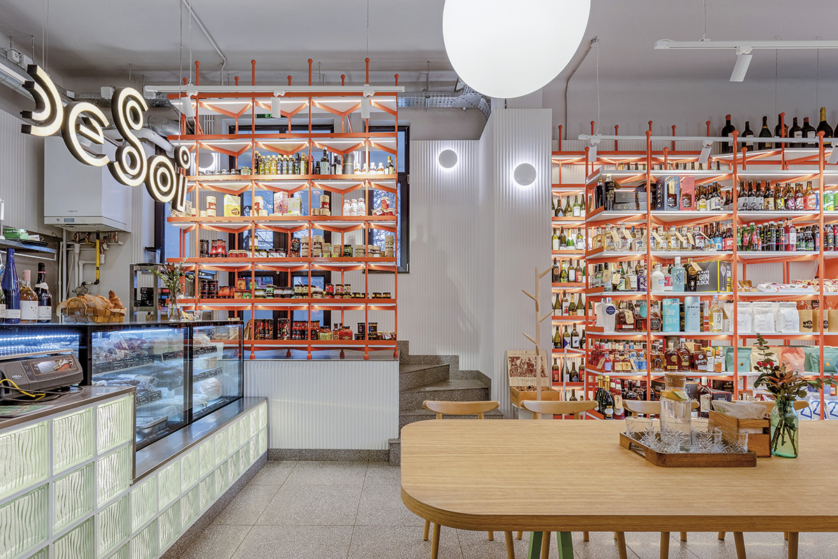 Totul pentru a contura un context „în care să găsim toate lucrurile care ne aduc bucurie nouă și prietenilor noștri”. DeSoi s-a integrat bine în tradiția negustorească a magazinului, iar spațiul cu pivniță unde vinul poate respira în voie și suprafețele vitrate mari invită comunitatea să ia loc în jurul unei mese comune. De amenajarea de interior s-a ocupat arh. Alexandru Dabija, care a trasat o atmosferă convivială în jurul mesei centrale, cu rafturi de unde se pot alege delicatesele și bar-tejghea. Partea de brutărie și-a găsit un loc aparte, iar spiritul locului a fost repus în valoare grație recondiționării pardoselii mozaic sau a profilului ușilor de intrare.