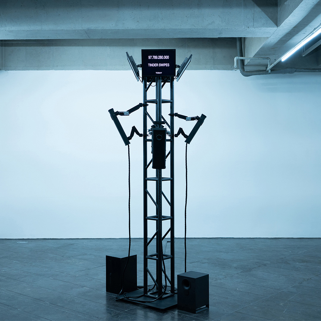 Expoziția va fi deschisă cu lucrarea APES de Marco Barotti, un artist fascinat de expansiunea aplicațiilor digitale, dar mai ales de întrebările incomode pe care le ridică folosirea acestora, de la sustenabilitate, la confidențialitate, supraveghere și control. Marco Barotti explorează noi teritorii, examinând modul în care tehnologiile inteligente schimbă comportamentul uman și dinamica grupurilor. Se pierde apoi în universuri utopice, croite din entuziasm, încredere oarbă în tehnologie sau dintr-o cunoaștere superficială a mecanismelor din spatele dispozitivelor inteligente. Instalația păstrează un punct de reper clasic, maimuțele, simbol universal al evoluției și bornă relevantă a unui parcurs care tocmai tranzitează un punct macaz: cum va arăta următoarea siluetă din șirul evoluționist și care va fi relația sa cu concretul în lumea de mâine?
