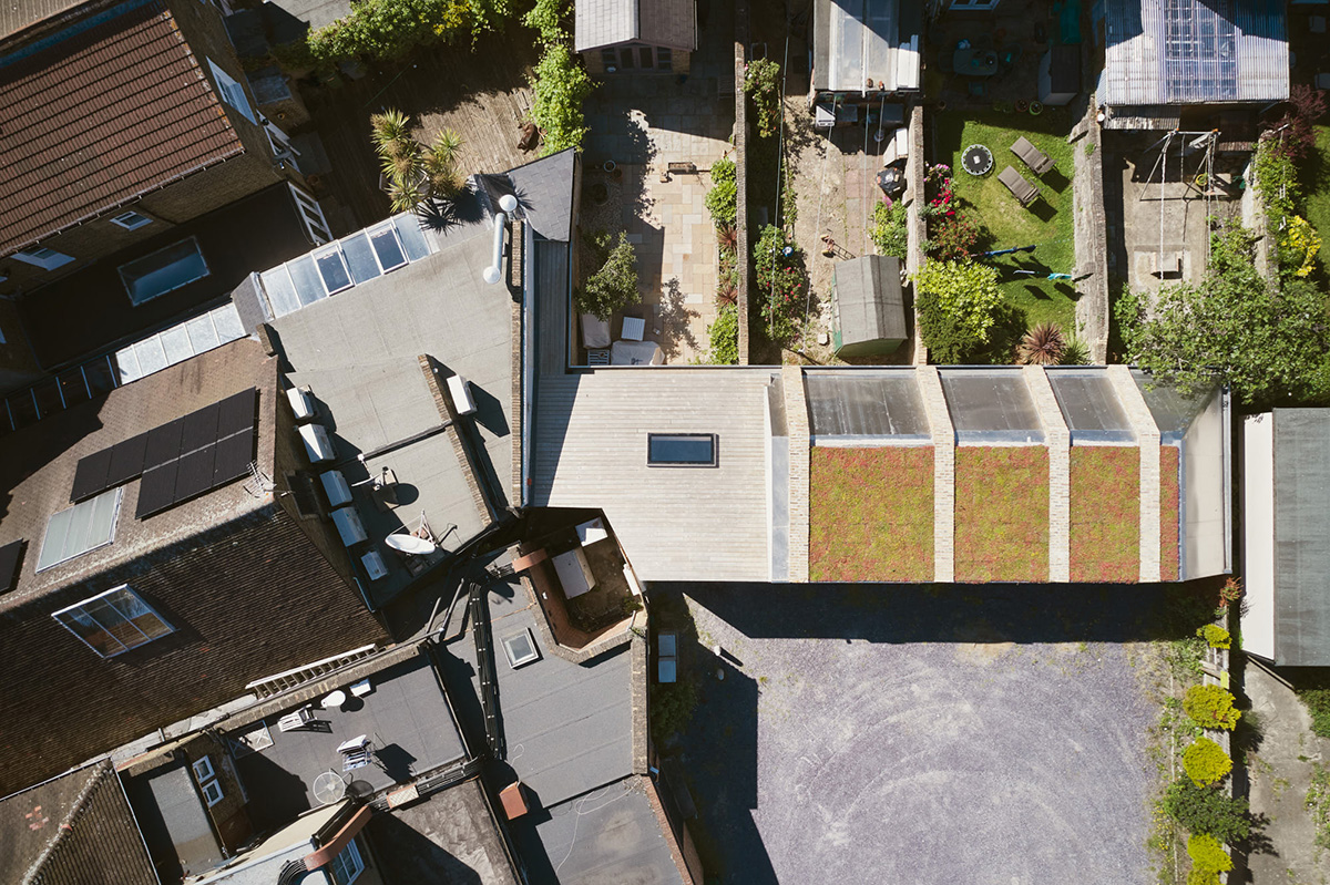 Deoarece proiectul este situat într-o zonă rezidențială, o prioritate importantă a fost de a respecta intimitatea locuințelor din apropierea sitului. Prin urmare, arhitecții au conceput un volum parțial îngropat la 1,5 m sub nivelul solului, pentru a reduce masa percepută a extensiei, care, astfel, se înalță la numai 2 m deasupra zidului grădinii învecinate și poate fi ușor accesată din parcarea adiacentă.