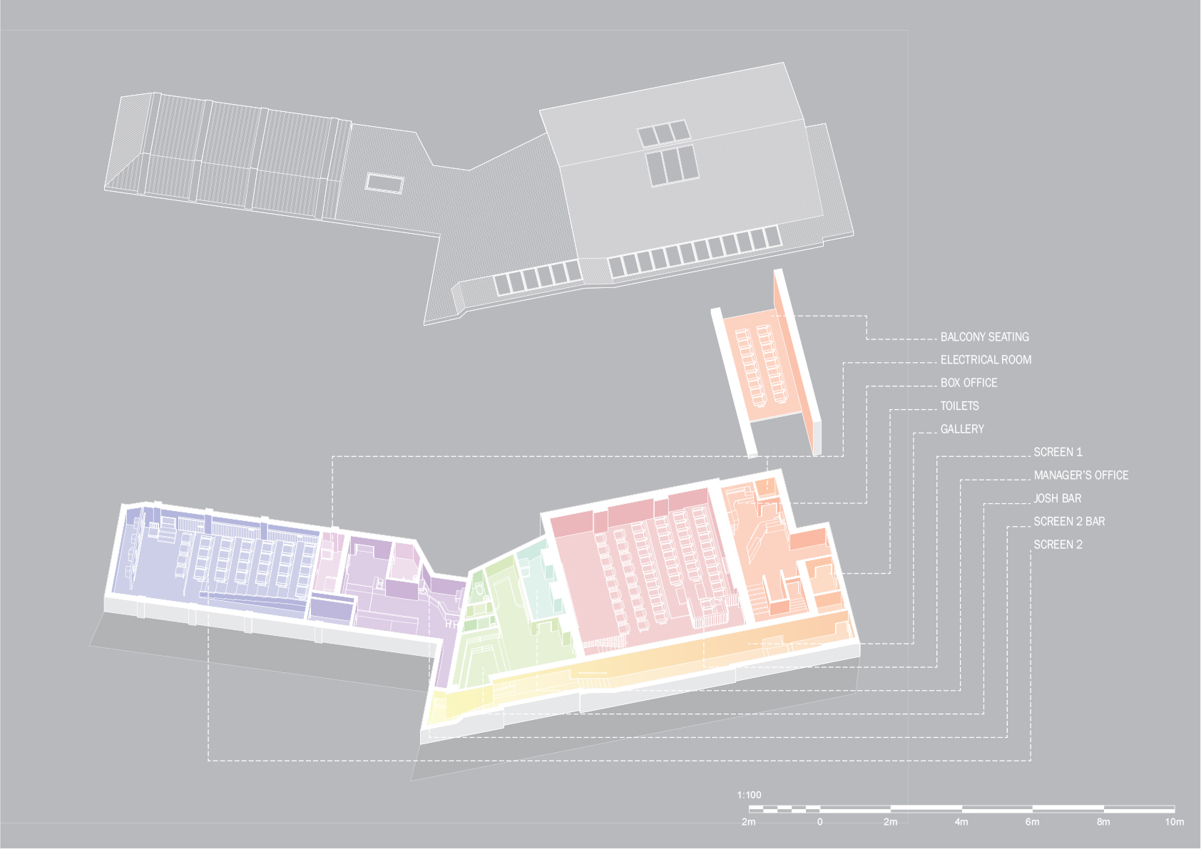 În ceea ce privește noua sală de cinema, ea are 30 de locuri, include un spațiu flexibil ce poate acomoda două fotolii rulante, sau poate fi folosit pentru organizarea de dezbateri și alte evenimente, și este deservită de un mic bar.