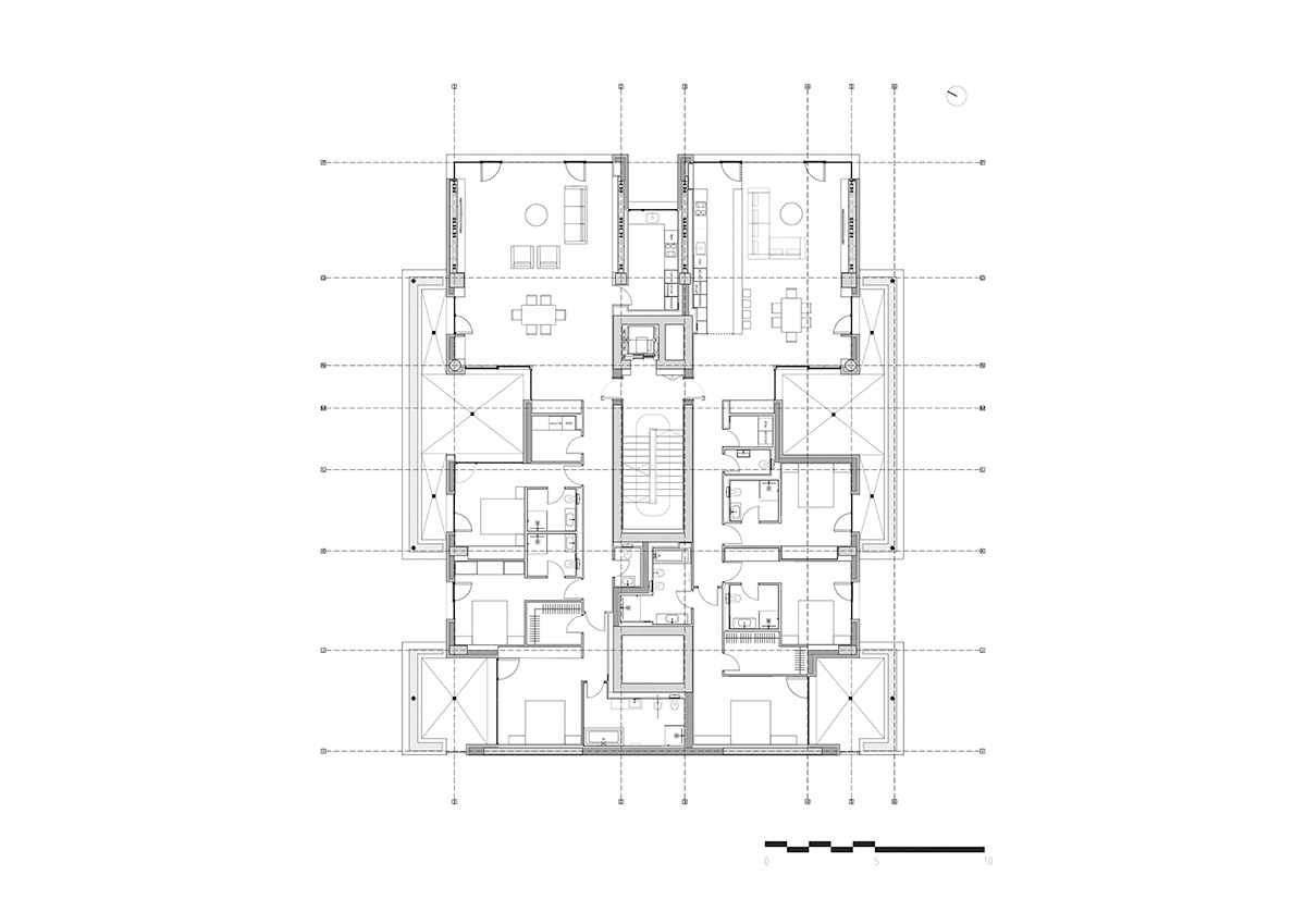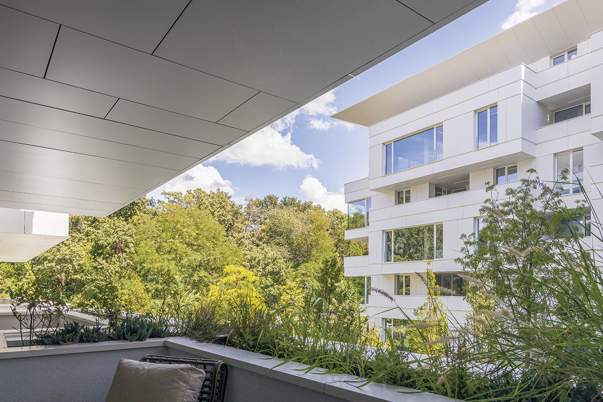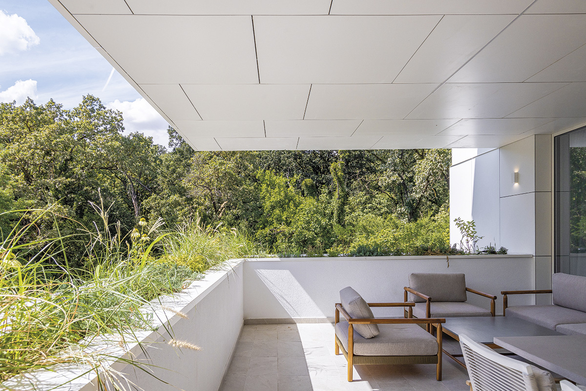Așa a rezultat soluția a două tipuri de terase – unele acoperite, „săpate” în volum, iar altele obținute din alternanța nivelurilor diferite, care se concretizează în terase generoase. Conceptul se bazează pe jocul dinamic al unor volume simple, paralelipipedice, ce individualizează unitățile de locuit și aduc ansamblul la scara umană. Prezența consistentă a teraselor adânci cu jardiniere, integrate în aceste volume cu regim mediu de înălțime, reprezintă, o dată în plus, o fină mediere între exterior și interior și accentuează senzația de întindere și orizontalitate. De aici o calitate a locuirii ce se apropie de confortul unei locuințe individuale – un deziderat, în fond, mereu valabil, dar pe care experiența pandemiei l-a transformat într-o necesitate și mai acută.