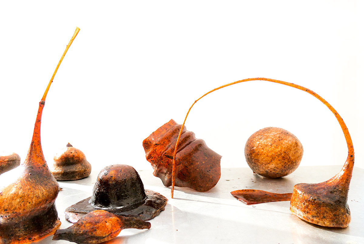 Ce a diferențiat-o pe Ori Orisun Merhav de restul absolvenților Academiei de Design din Eindhoven este pasiunea pentru poveștile pe care materialele din cercetările sale le poartă și procesul colaborativ prin care acestea trec. Teza ei explorează „materia ca instrument de reflecție asupra relației dintre oameni și natură”, o practică pe care o reia și în abordarea experimentală a lacului – o secreție rășinoasă a insectelor Kerria Lacca. Or, Orisun conștientizează că, deși este folosit în industrie în principal pentru a acoperi alte materiale, lacul are potențialul de a deveni un material de sine stătător, fiind un polimer natural produs de insecte și având calități similare cu plasticul și sticla. Lacul devine elastic și ușor de remodelat odată ce este topit, iar temperatura de topire este destul de scăzută și poate fi atinsă cu ușurință cu ajutorul unui pistol termic.