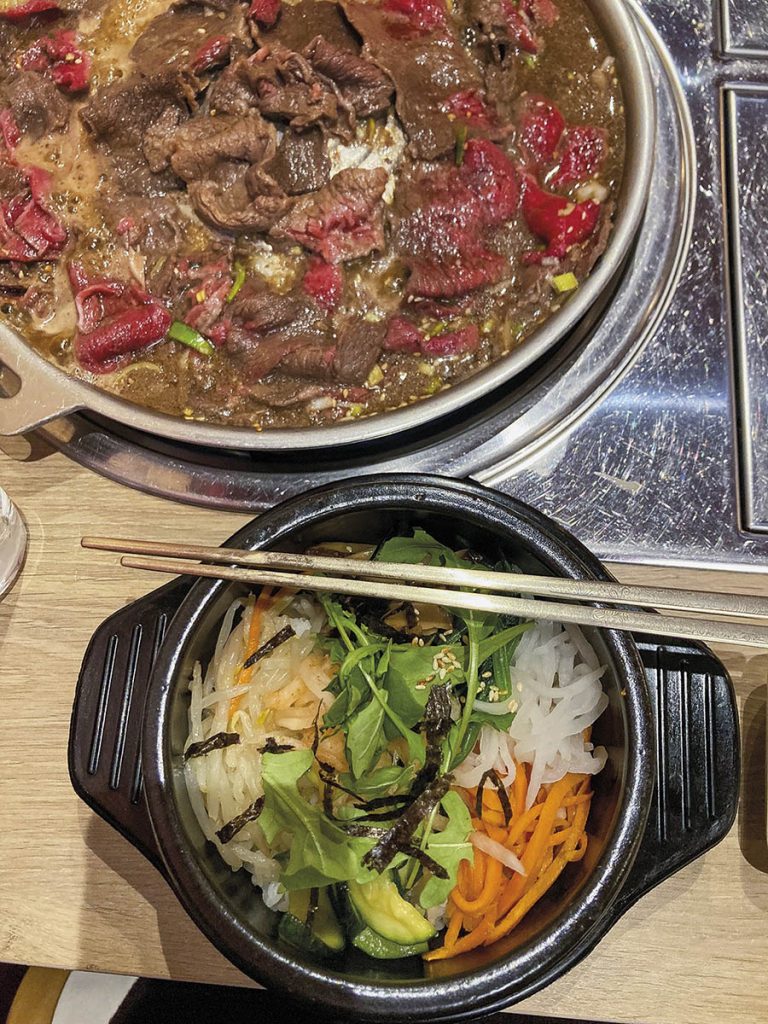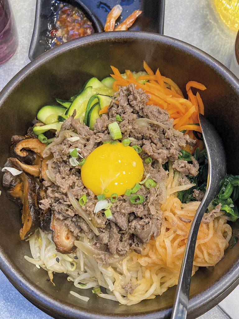 O sticlă de makgeolli se poate bea și în jurul unui consistent bol de bibimbap, nu departe de Luvru, la restaurantul Chikoja (originar din orașul sud-coreean Cheongju, unde are deja o istorie de 60 de ani). În bibimbap aroma orezului fuzionează cu cele ale vitei tocate și legumelor (kimchi, ciuperci, muguri de fasole etc.), peste toate tronând auriul unui gălbenuș. Acompaniind bucatele sau domolindu-le efectul la finalul mesei, makgeolli și a sa aromă dulceag-acidă rotunjește experiența și face poftă de călătorie.