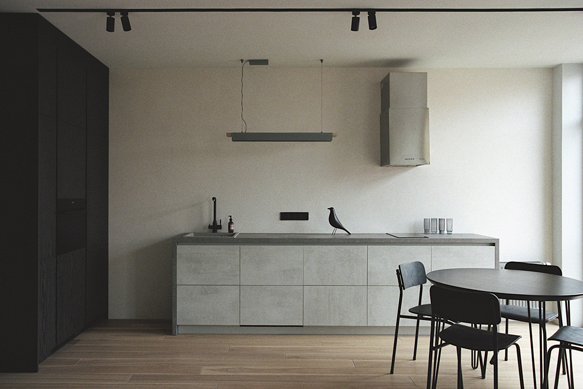 PROIECT: Meditative Gray; AMPLASAMENT: Kyiv, Ucraina; SUPRAFAȚA UTILĂ: 70 mp; AMENAJARE DE INTERIOR: Landusheva Buro; FINALIZAT: 2019