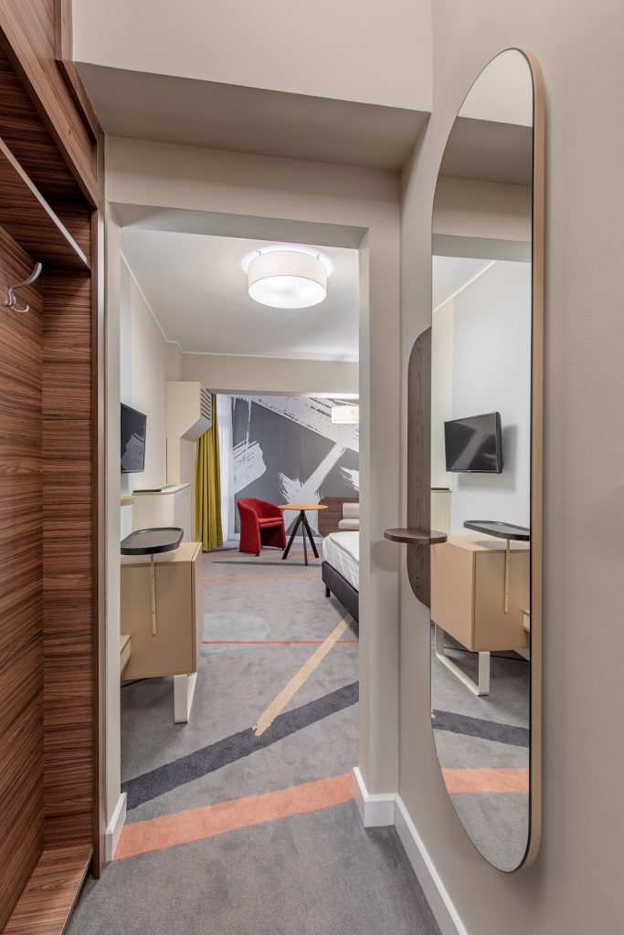 Notele elegante învăluie camerele ajutând călătorul să se transpună „într-o reinterpretare și abstractizare a arhitecturii moderniste locale și a fluviului Dunărea cu resursele sale unice.” Rezultatul „se simte bogat, cald și autentic. Se simte interesant și confortabil”.