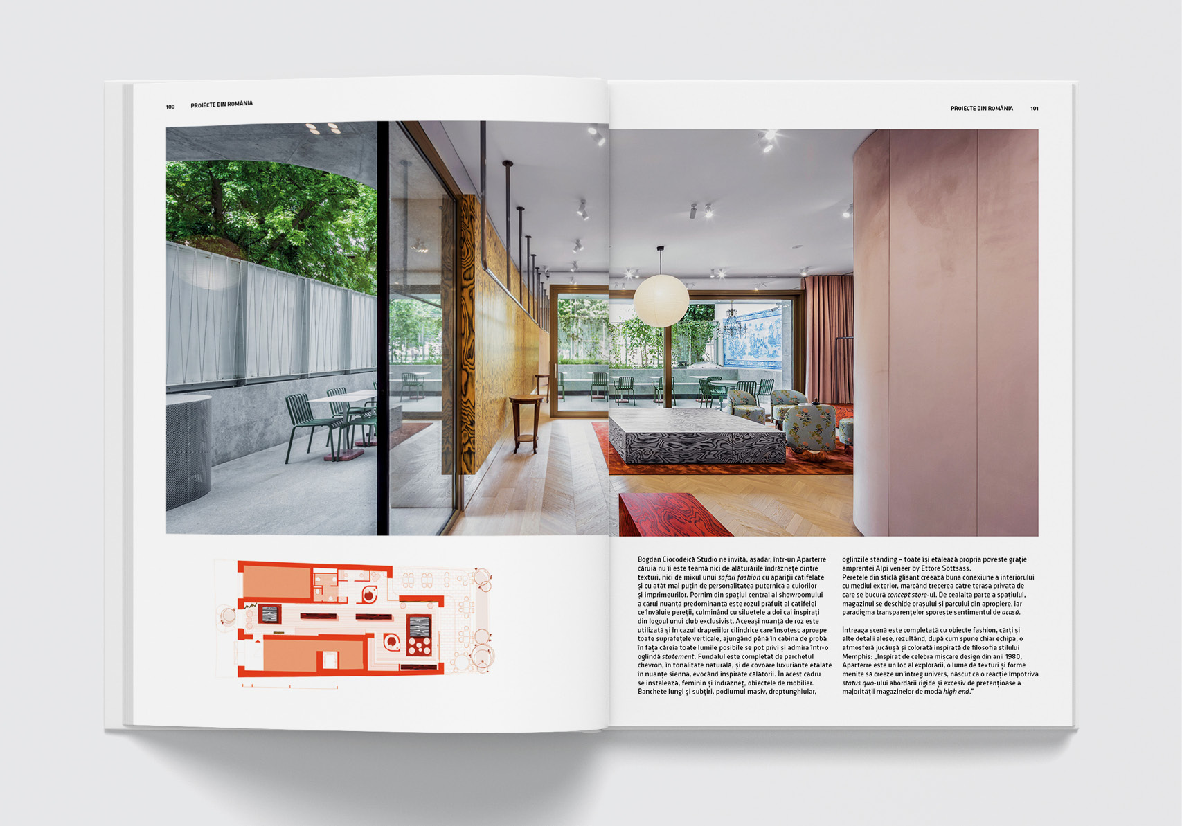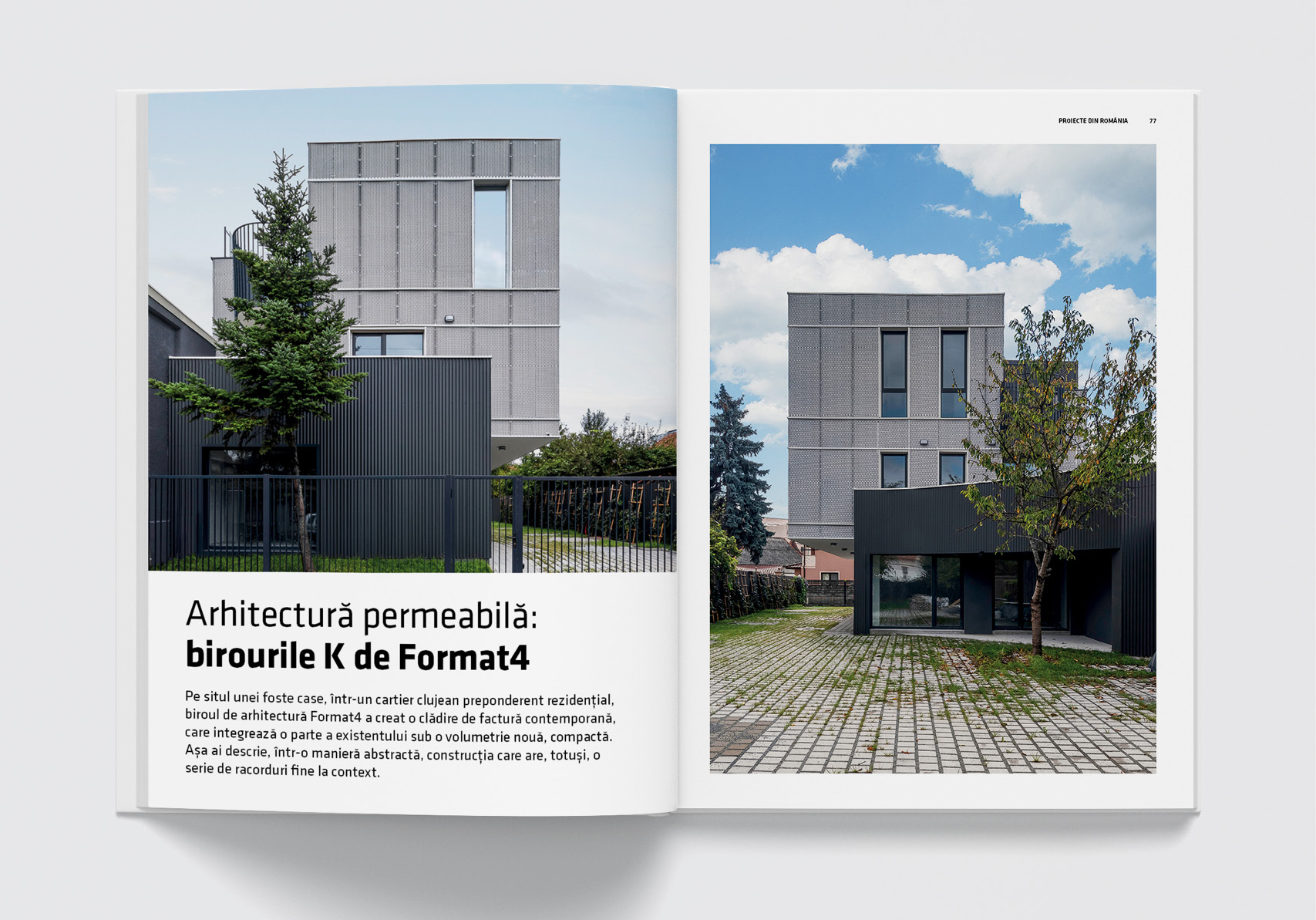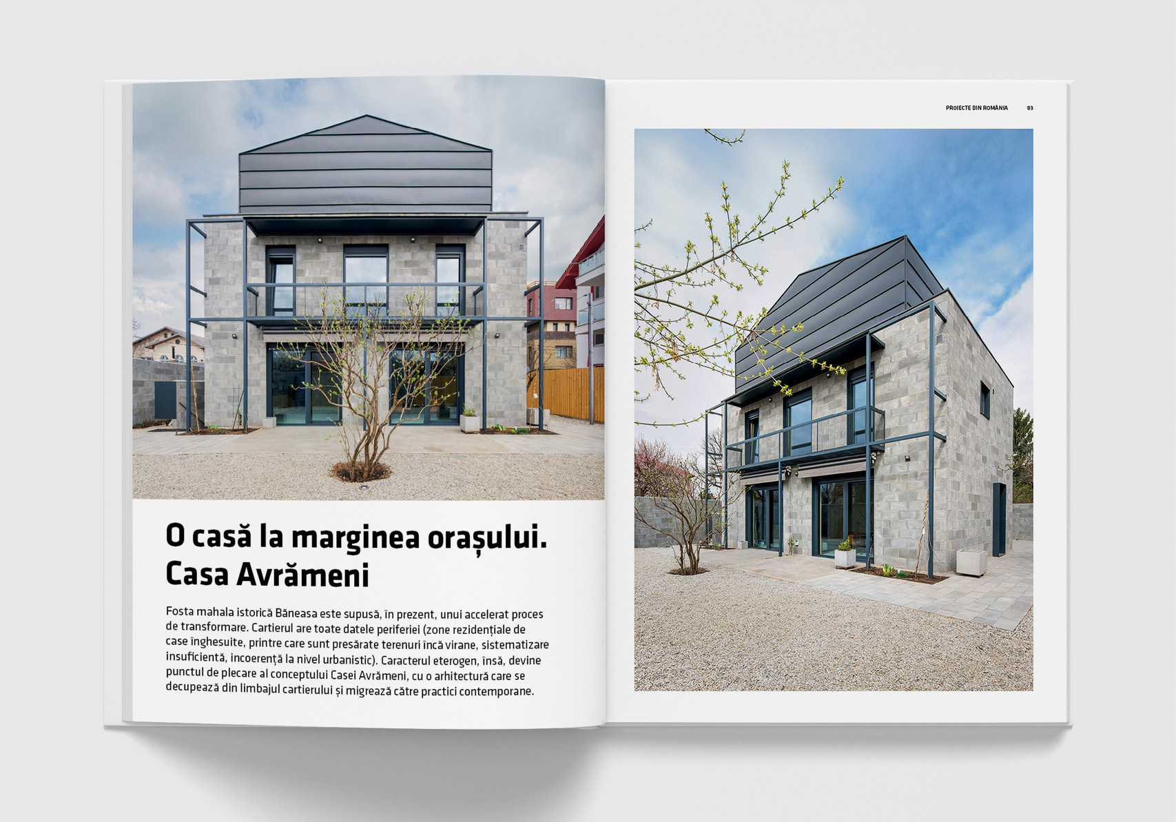 Proiecte din România prezintă, așa cum v-am obișnuit, cele mai reprezentative și emblematice propuneri din ultima perioadă. Dintre proiectele prezentate amintim câteva: Birourile K, de Format4 Architects, o clădire delicat integrată în context, Casa Avrămeni de Studio Act demonstrează formule contemporane de locuire, la marginea orașului. La Timișoara, Studio Arca a proiectat Essenza Residence, un complex rezidențial inedit, cu standarde înalte de locuire, iar la București, Bogdan Ciocodeică a realizat designul unui showroom de lifestyle, Aparterre: un spațiu elegant, care îmbină materiale și texturi fresh.