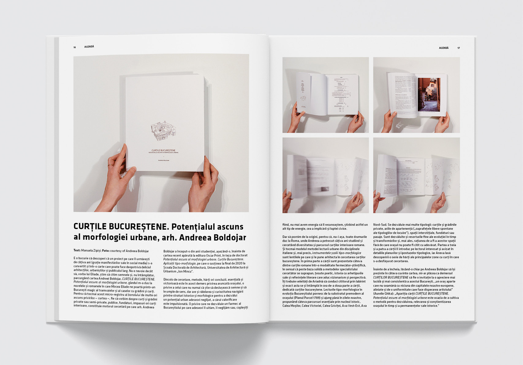 Deschidem Agenda cu o recenzie a cărții Potențialul ascuns al morfologiei urbane. Curțile bucureștene de Andreea Boldojar, continuând cu prezentarea concursului Un Iași pentru viitor, prima competiție internațională din România care a desemnat câștigător biroul UNStudio.
