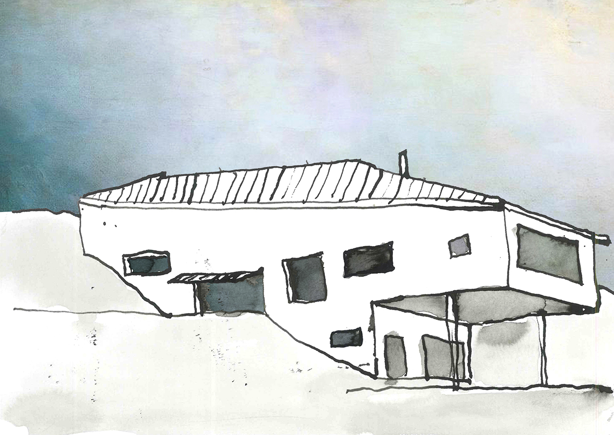 Soluția atipică nu corespunde numai profilului beneficiarilor, ci și terenului în sine, cu o lungime de peste 100 m și o lățime de doar 10 m, și definit de o pantă abruptă. Casa se adaptează cu abilitate acestui teren provocator prin volume adiționale alipite celui central, ce conține atelierul. Deschiderile de pe fațadele lungi creează o axă transversală, realizând o trecere treptată către cele două grădini prin intermediul teraselor.