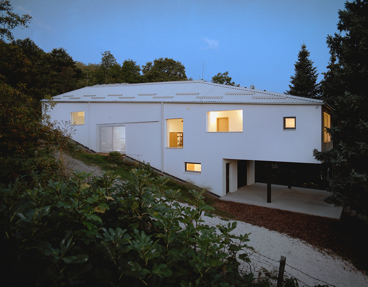 Un tânăr cuplu de artiști din Ungaria și-a dorit o casă care să ofere și spațiul necesar pentru desfășurarea activității de creație. După ce au luat în considerare diverse opțiuni, inclusiv o clădire industrială veche, cei doi s-au hotărât să își construiască locuința pe un teren moștenit, situat în apropiere de Budapesta. Astfel a luat naștere proiectul pe care vi-l prezentăm aici, o casă unică, cu un interior minimalist și un atelier generos, dar și cu spațiu amplu pentru depozitarea lucrărilor de artă, materialelor și instrumentelor.