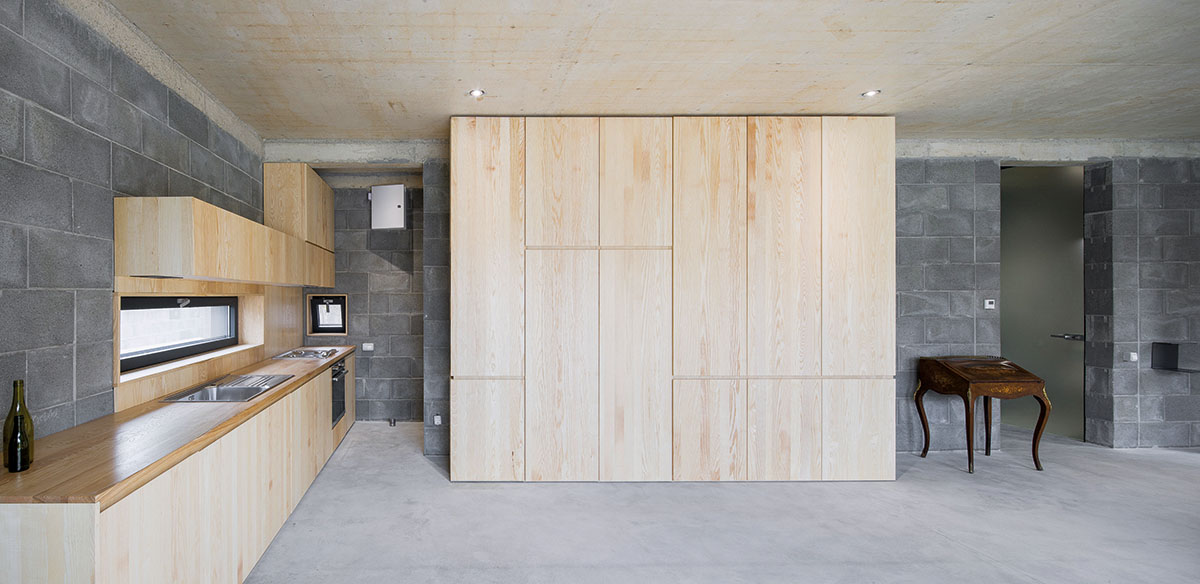 Piesele de mobilier, obiectele de iluminat și accesoriile au fost integrate în conceptul casei, acestea fiind esențiale în conturarea atmosferei speciale. Pe lângă rolul pur funcțional, estetica lor aduce și o amprentă personală asupra lucrării, conturând un caracter puternic și nuanțat. De asemenea, arhitectura de interior pornește de la o serie de piese de mobilier vechi, păstrate de proprietari și care își regăsesc aici o structură nouă. Aceste integrări de factură ecologică intensifică atmosfera și mențin dialogul conceptului, acela al multiplelor integrări. O altă încăpere aparte a casei se regăsește în subsol: aici este expusă o colecție de 25 de picturi în ulei, alături de 10 lucrări de grafică, toate amplasate central, în mijlocul spațiului, axial, amplificând astfel dimensiunea arhitecturală.