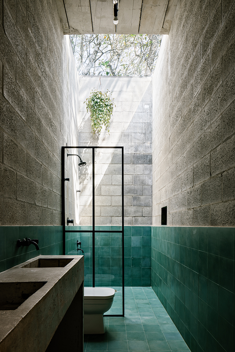 Natura menține echilibrul termic al casei, garantând circulația liberă a aerului proaspăt în interiorul volumelor cu înălțimea de 4 m chiar și în cea mai călduroasă perioadă a anului. În sezonul rece, ferestrele generoase rețin căldura soarelui. Inerția termică este garantată de soliditatea materialelor, iar distanțara față de sol ajută la evitarea contactului cu apa în timpul sezonului ploios, respectând, în același timp, microsistemele locale.