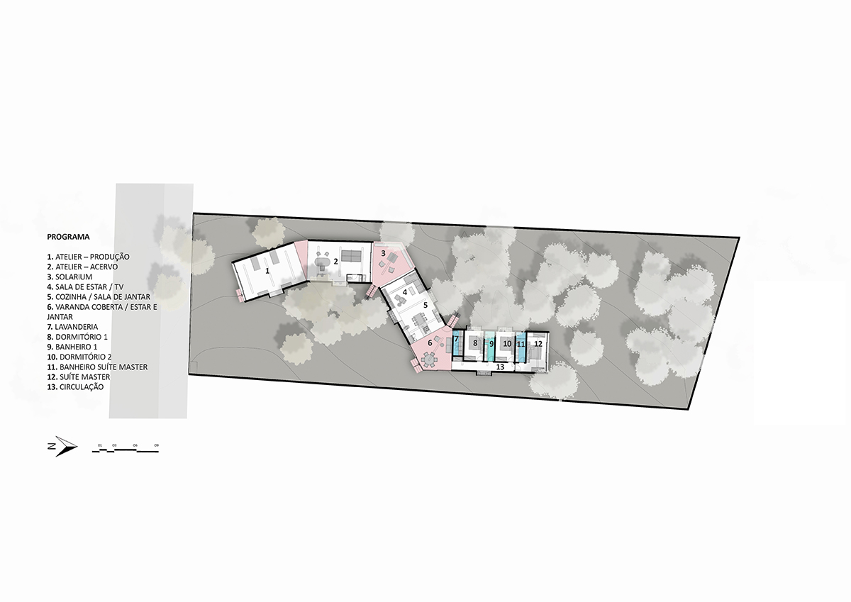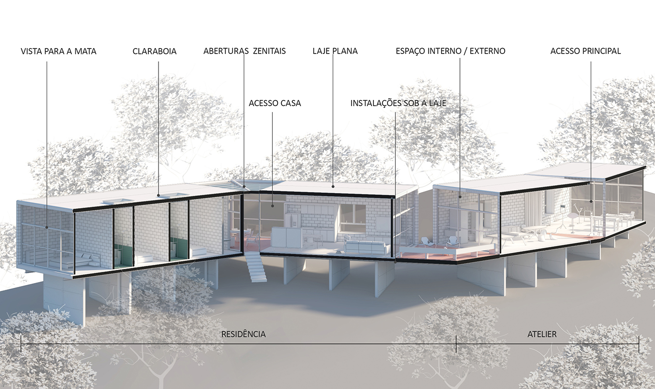 Amplasată la limita orașului São Paulo, această casă, ai cărei proprietari sunt un cuplu de artiști, se inserează în mod inedit într-un peisaj natural regenerat, la limita orașului São Paulo. Conceptul de arhitectură pornește de la ideea unui tren care străbate peisajul, nevăzut, dar auzit, și se traduce într-o volumetrie dinamică, ușoară, în ciuda dimensiunilor generoase, și cu impact minim asupra împrejurimilor.