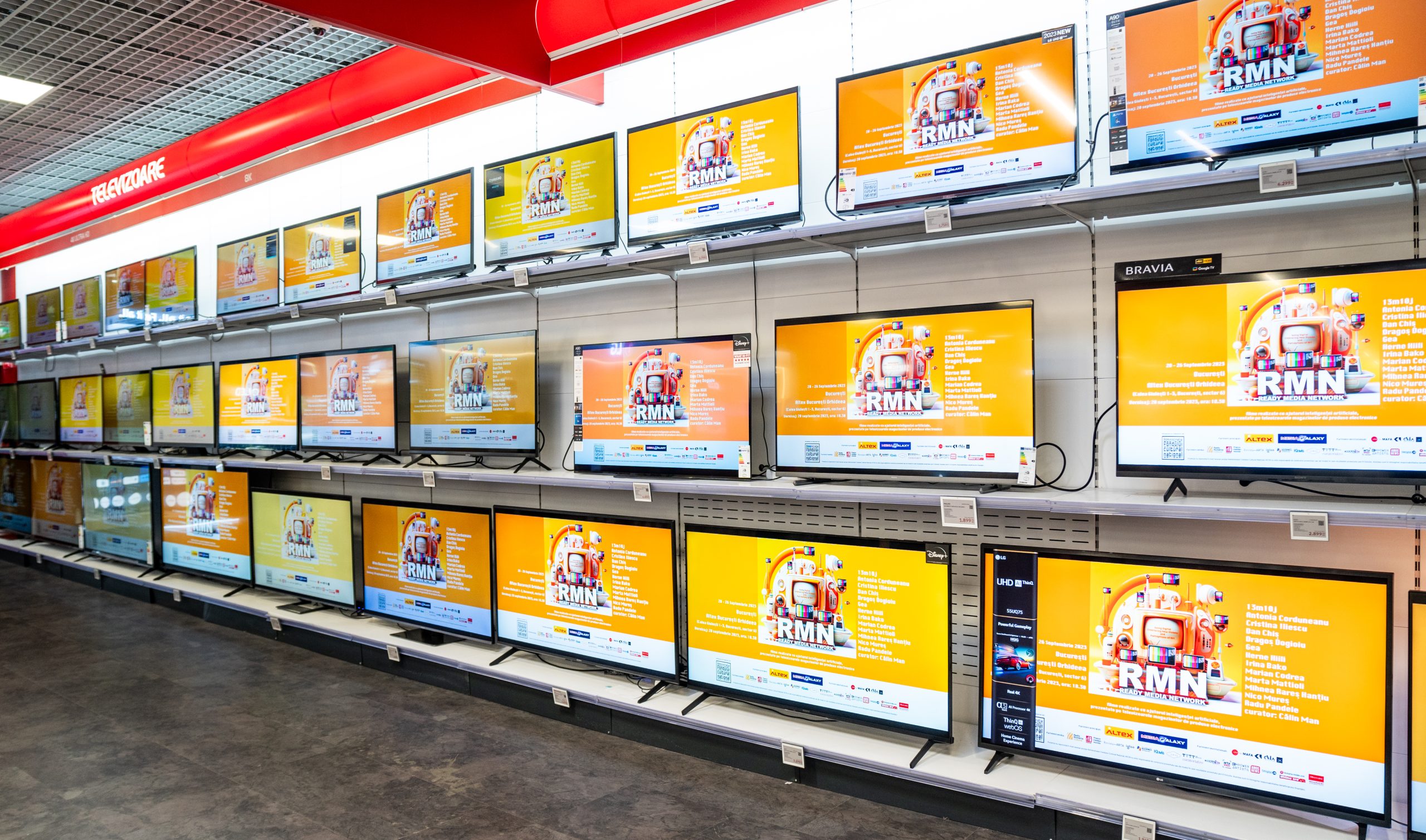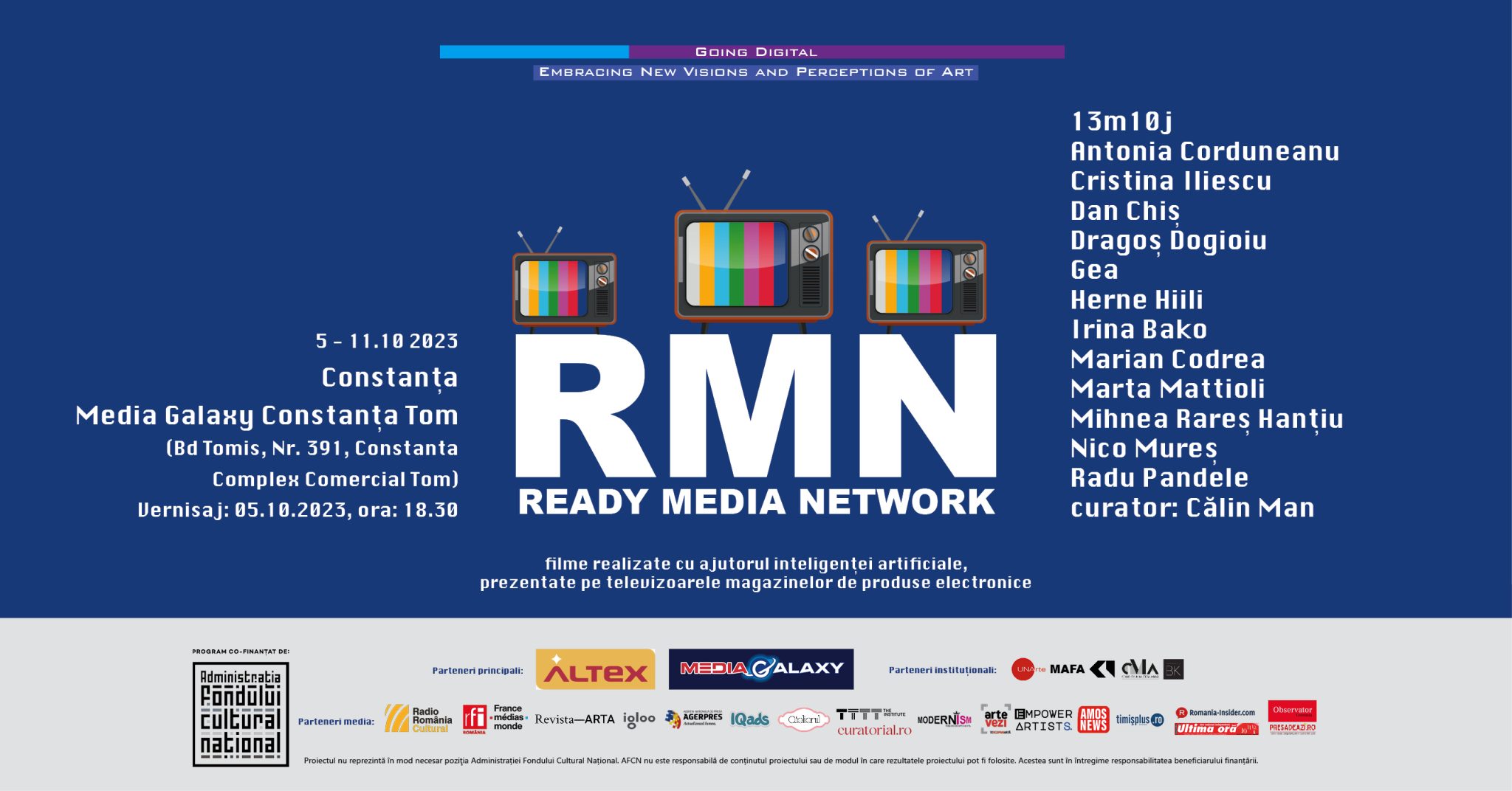 Expoziția _ready media network(RMN)_, rezultatul proiectului „Going Digital- Embracing New Visions and Perceptions of Art”, prezintă douăzeci de lucrări realizate de un grup de artiști din tânăra generație, cu ajutorul programelor de Inteligență Artificială, sub forma unei instalații audio-video site-specific montată în magazinele de electronice.