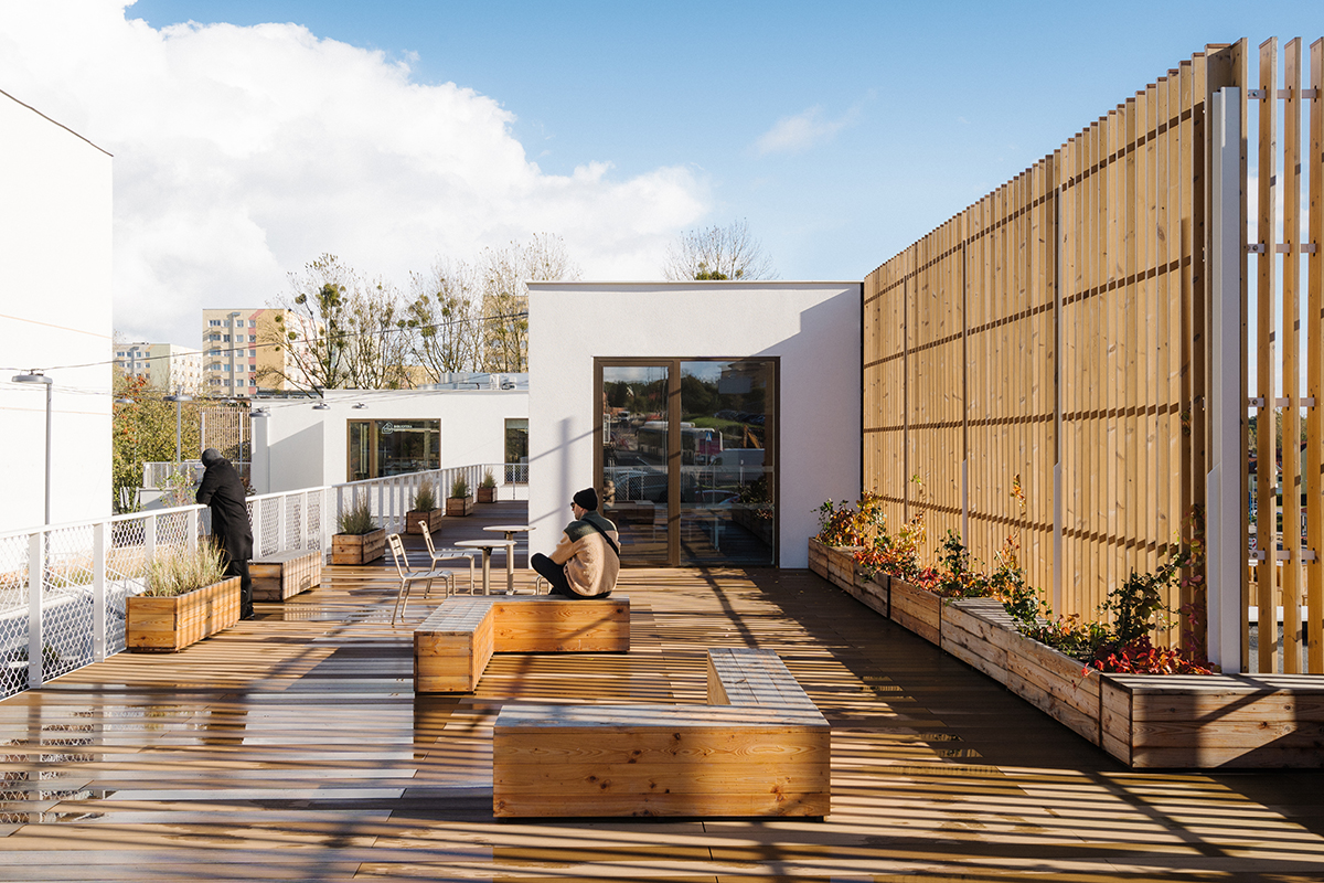Acoperișurile ambelor clădiri au fost amenajate ca terase deschise publicului, accesibile atât din interior, cât și din piață. Întregul complex urmează un sistem de orientare ușor lizibil și coerent și îndeplinește cele mai înalte standarde de accesibilitate. O atenție deosebită a fost acordată nevoilor rezidenților mai în vârstă, pentru ei fiind prevăzute zone de relaxare însorite și mese de șah integrate în spațiul verde.