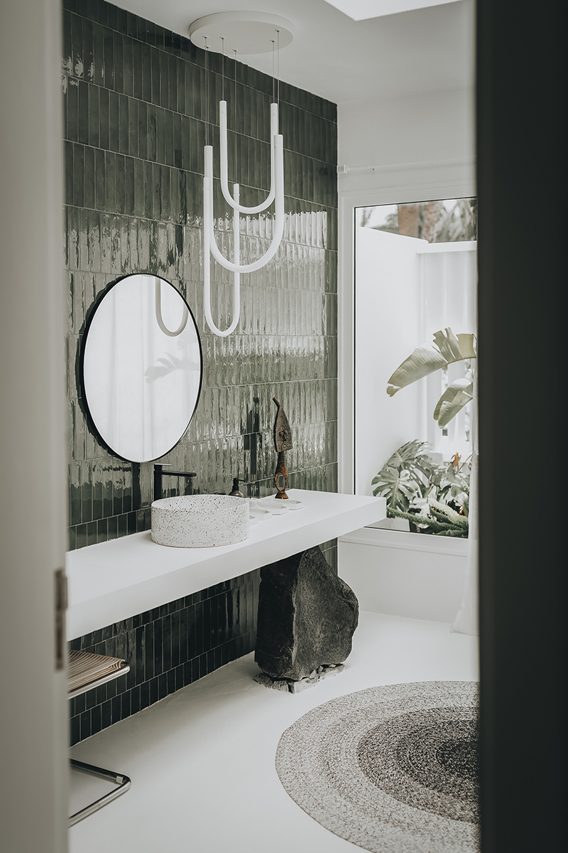 Pe insula Lanzarote, cea mai estică dintre Insulele Canare, o vilă construită în anii 2000 a fost renovată și reamenajată pentru a fi transformată în casă de vacanță. La exterior, vila respectă reglementările stricte de pe insulă, unde arhitectura păstrează o înălțime redusă și un alb strălucitor, în mijlocul peisajului dominat de verdeața palmierilor și de tonurile închise ale rocilor vulcanice. Prin urmare, conceptul de design interior a luat naștere într-un mod cât se poate de firesc, cele trei culori ce definesc contextul – alb, verde, negru – fiind transportate înăuntru pentru a crea un mediu sofisticat, relaxant și contemplativ.