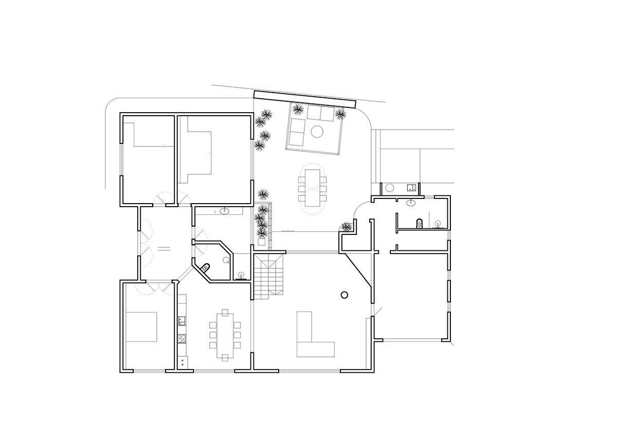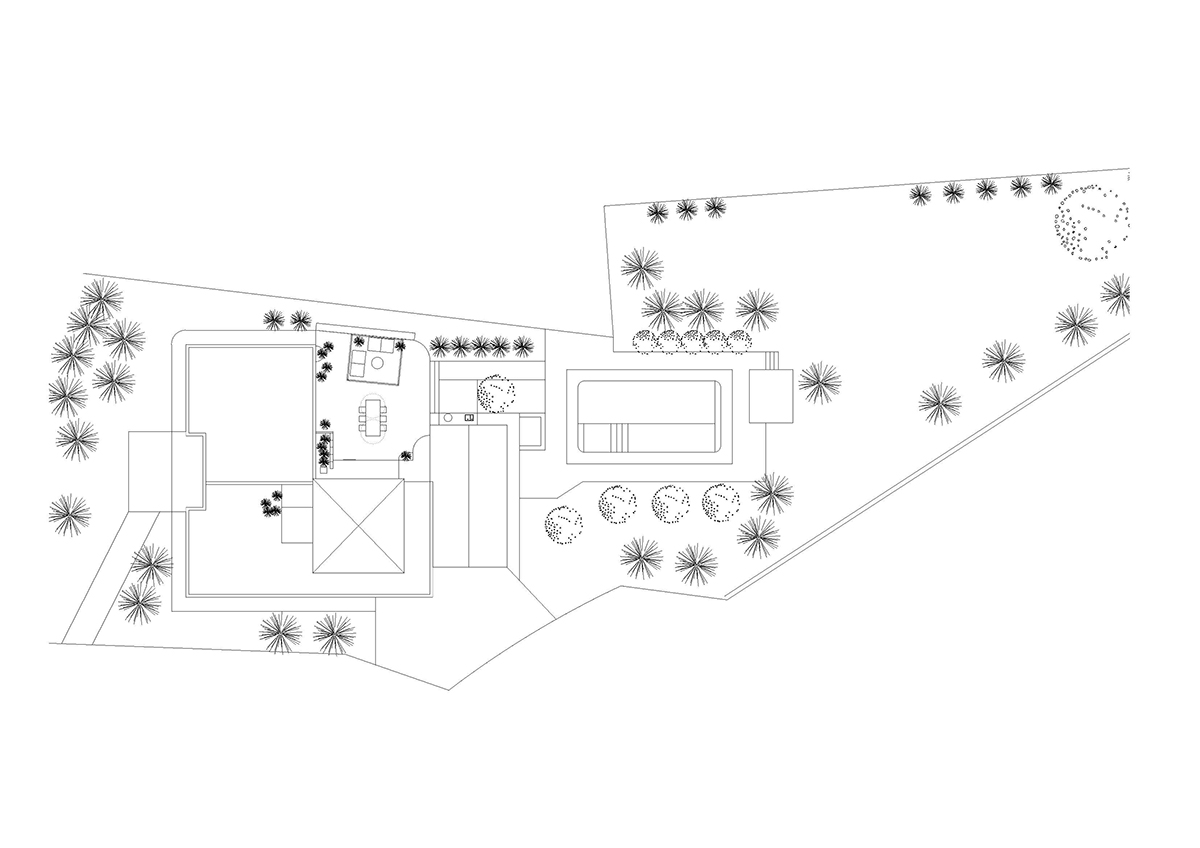 Într-o primă fază, planul vilei a fost modificat, cu scopul de a crea mai multe dormitoare, aceasta constituind singura intervenție majoră asupra existentului. În rest, arhitecții s-au limitat la gesturi simple, punctuale. Astfel, baia cu vitraje generoase și vedere spre grădină a fost remodelată, căpătând un aspect mai aerisit. Spațiul de living a fost redus pentru a permite amenajarea unui open space ce include bucătăria și zona de lining, fiind conectat cu o terasă exterioară, prevăzută cu grătar și cu o masă lungă, protejată de o pergolă adiacentă unui perete din piatră vulcanică. Atât pe terasă, cât și în zona de piscină, au fost ridicate noi ziduri de beton, care protejează împotriva vântului și asigură intimitatea băilor. O terasă adițională, tip sun deck, a fost amenajată la etaj.