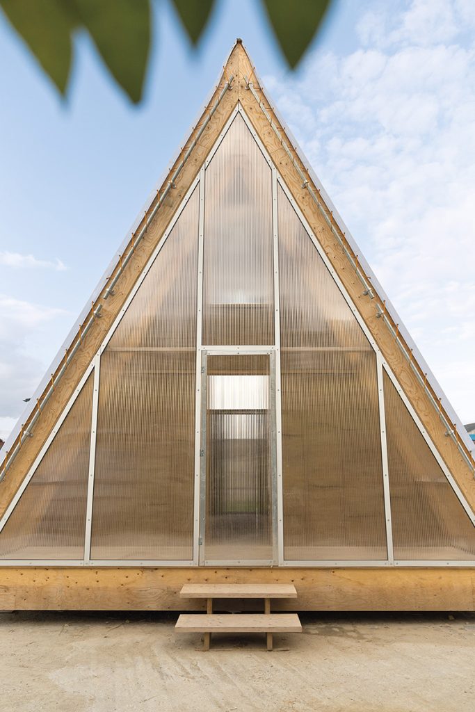 Structura adăpostului este din lemn prefabricat şi poate fi asamblată în mai puţin de două săptămâni. Atelier Craft au ţinut cont de properităţile izolatoare ale materialelor, motiv pentru care au dispus un panou din policarbonat orientat spre sud, în zona destinată unei mici sere, precum şi un perete paralel realizat din cărămizi de pământ — ansamblul având rolul de a menţine căldura, pe timp de iarnă, şi răcoarea, pe timp de vară. Faţada nord este izolată cu perete paralel realizat din pământ şi paie, iar interiorul este finisat cu panouri din placaj.