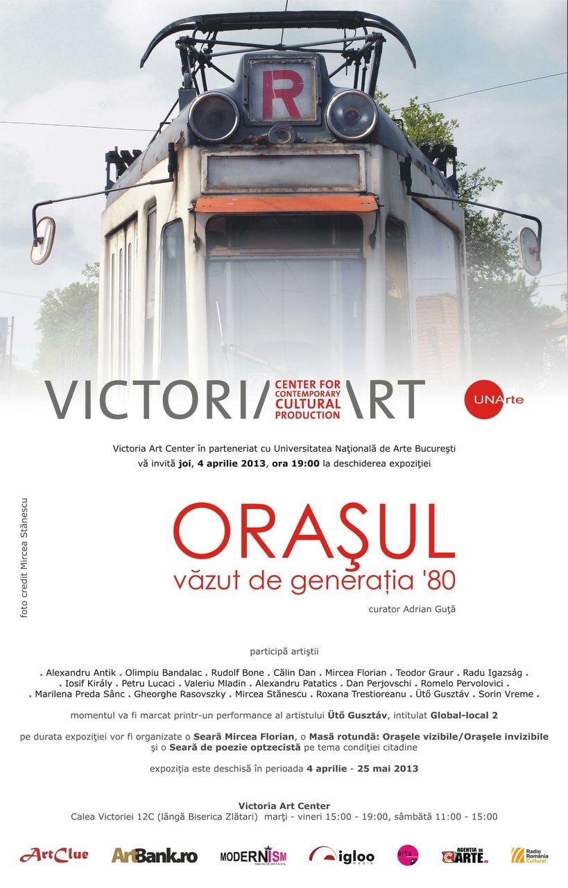 Artiştii cu care se “clădeşte” expoziţia de la Victoria Art Centre dezvăluie cu luciditate nemiloasă realităţi urbane şi social-politice incomode, dar sunt sensibili şi la misterele, poezia şi chiar pitorescul oraşului. Prezentul “desant” al optzeciştilor operează cu limbaje artistice subliniat consonante cu axul tematic al condiţiei citadine şi care au contribuit din plin la dinamica generaţiei respective la începuturile sale, dar şi pe parcurs: fotografie, video, computer based art, instalaţie, obiect, performance. Artiştii pentru care am optat acum au fost invitaţi să participe cu lucrări mai recente, iar unele sunt realizate pentru această expoziţie. Oraşul văzut de generaţia ’80 este cea mai amplă expoziţie din ultimii douăzeci de ani alcătuită cu exponenţi ai acesteia după ce şi-au încheiat evoluţia în Atelier 35. Protagoniştii expoziţiei trăiesc şi lucrează în Bucureşti, Oradea, Cluj, Timişoara, Sibiu, Sfântu Gheorghe, centre majore pe harta A 35 de acum trei decenii, unii (şi) peste hotare, la Amsterdam sau Düsseldorf. Este o expoziţie a unor individualităţi marcante, care poartă cu sine repere ale apartenenţei la aceeaşi generaţie culturală. (Adrian Guţă)