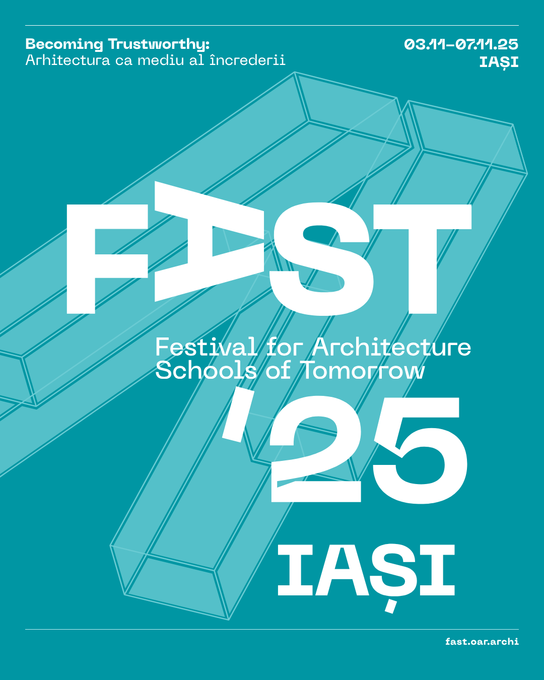 Iașiul devine pentru 5 zile capitala arhitecților și a tuturor celor interesați de profesie și de viitorul orașelor noastre. FAST: Festival for Architecture Schools of Tomorrow, primul festival românesc dedicat viitorului profesiei și mediului construit, are loc cu participarea unor nume de prim rang în arhitectura mondială și a comunității profesionale din țară și din regiune. Urmează 5 zile de conferințe-eveniment, expoziții, experimente participative, concerte, tururi de arhitectură și ateliere în care explorăm tematica ediției, inspirată – ca în fiecare an – din ceea ce se discută pe scenele internaționale (Congresele Uniunii Internaționale a Arhitecților UIA): Becoming Trustworthy. Arhitectura ca mediu al încrederii.
