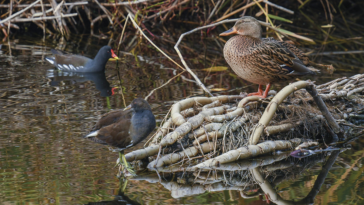 Găinușe de baltă și rața mare (femelă). Foto: Mihaela Simion, SOR