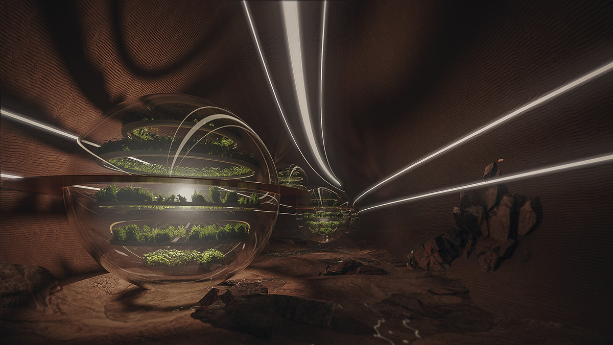 În timpul unei acomodări mai lungi pe o planetă străină, una dintre principalele probleme de sănătate mentală este lipsa unei estetici familiare. Oamenii vor să vadă frumusețea din jurul lor, chiar și pe Marte. Echipa a reușit să integreze un spațiu sublim și ergonomic într-un teritoriu ostil precum peisajul marțian. Volodymyr Usov, membru al Academiei Internaționale a Astronauților și director al Agenției Spațiale de Stat a Ucrainei
