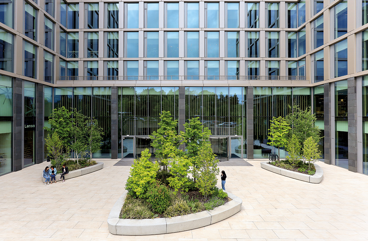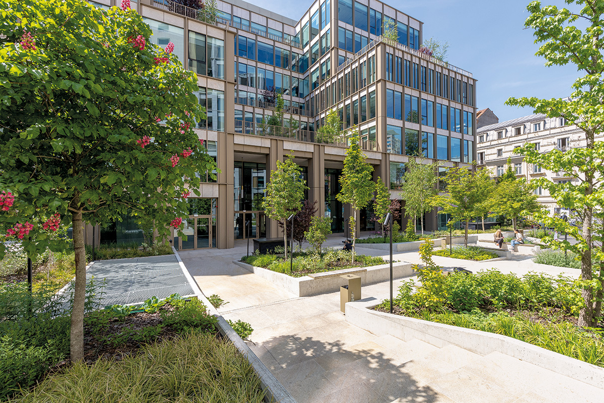 Amenajarea spațiului public susținută de parterul cu funcțiuni comerciale ține cont de nevoia de a realiza conexiunile potrivite, de a introduce locuri de odihnă și locuri de întâlnire. Insulele verzi au fost înălțate pentru a avea cantitatea potrivită de sol pentru copaci suficient de maturi, iar speciile au fost combinate pentru a crea un efect sezonier care poate evolua în timp, oferind suficientă umbră, culoare și volum.