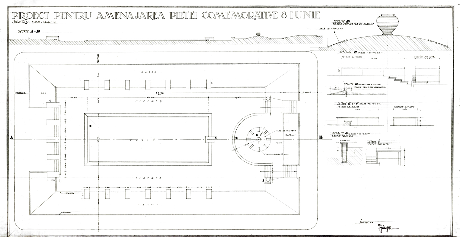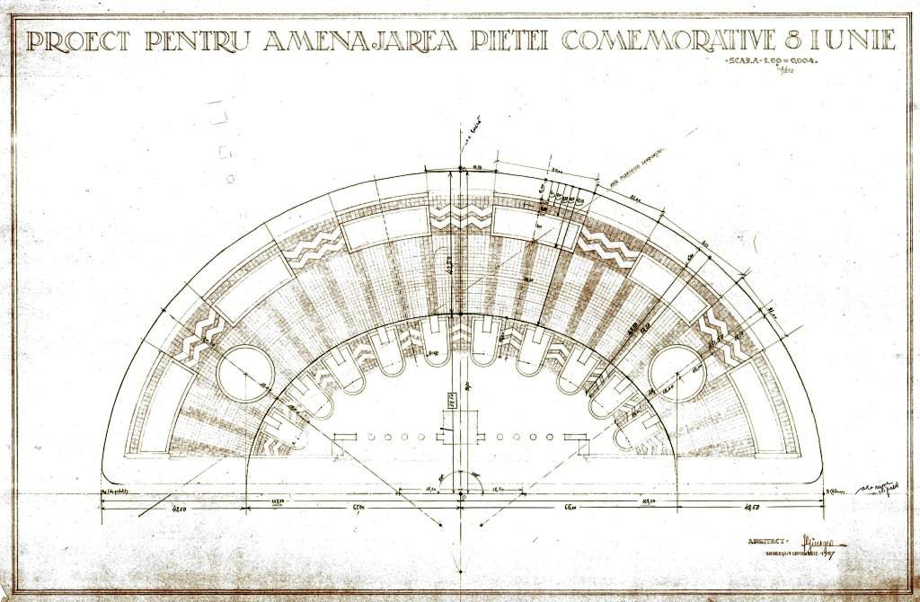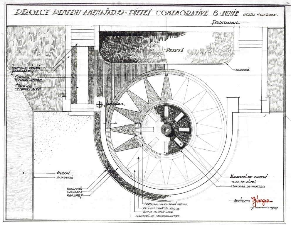 Cu toată elaborarea formală, proiectul nu a putut fi implementat în integralitatea conceptului lui Giurgea. Imagini din anii ’60 arată că ceva fusese realizat din semicercul lui Giurgea, dar totul era redus la o parcelă verde, nicidecum la amploarea pe care acesta o dăduse în proiectul elaborat în 1937.