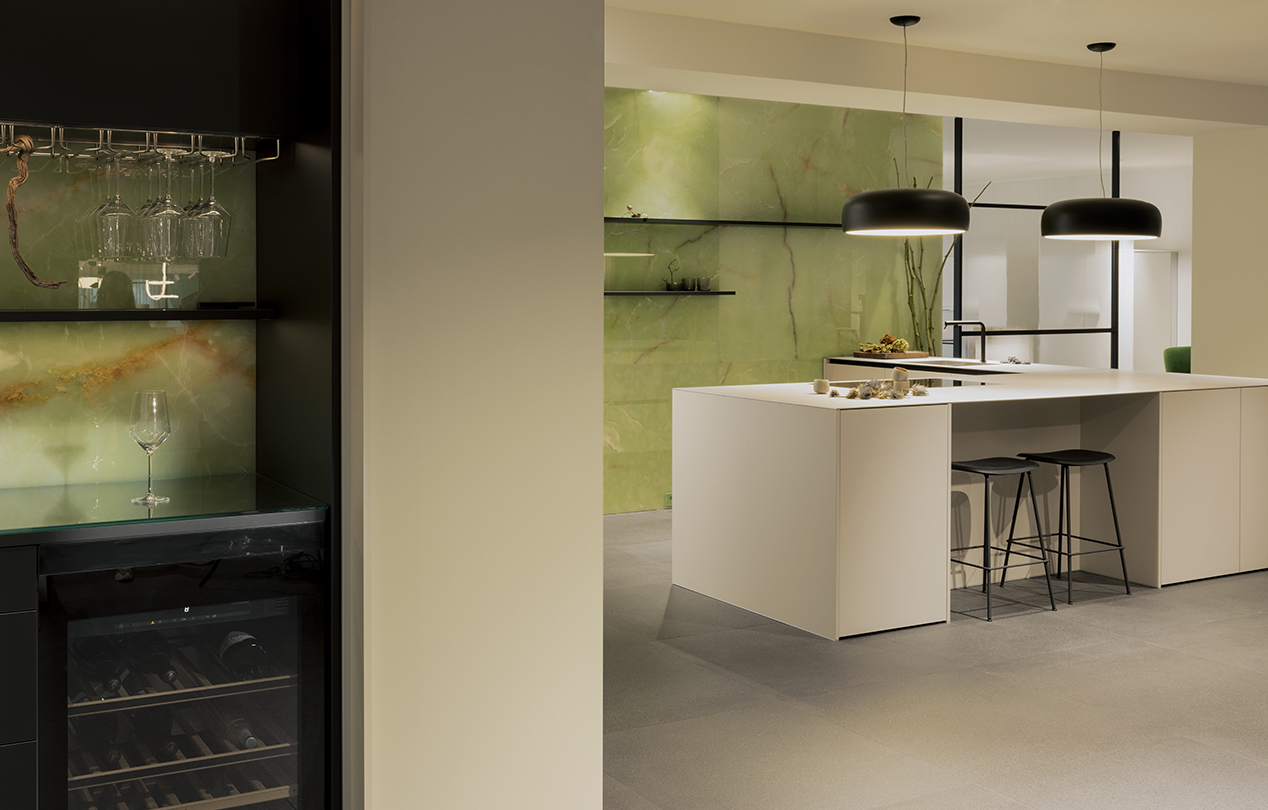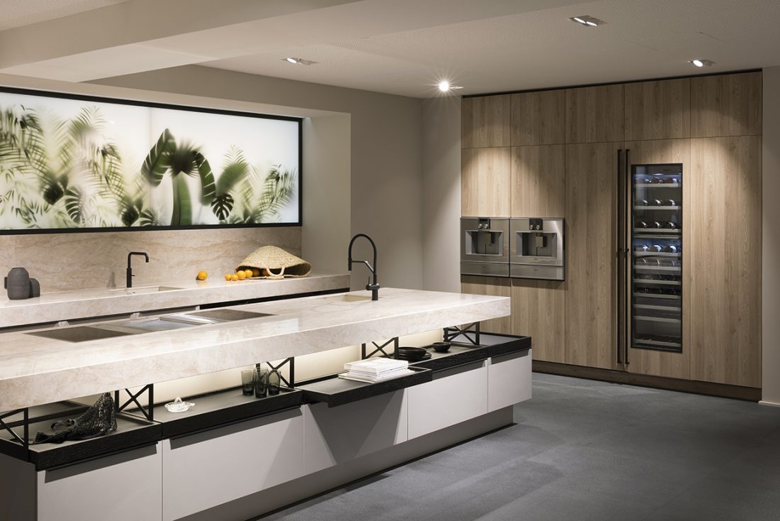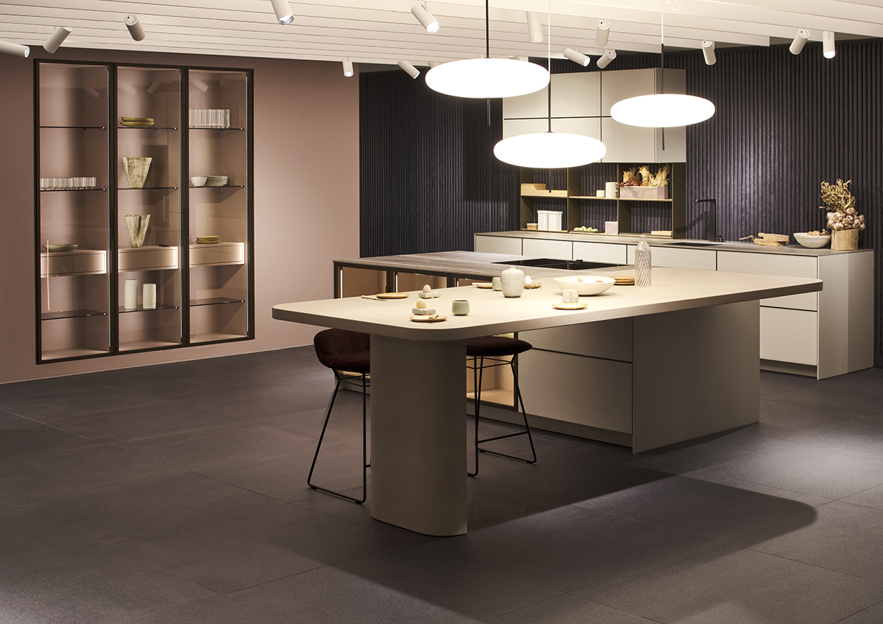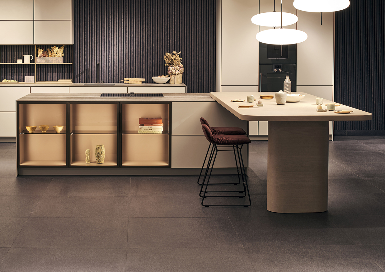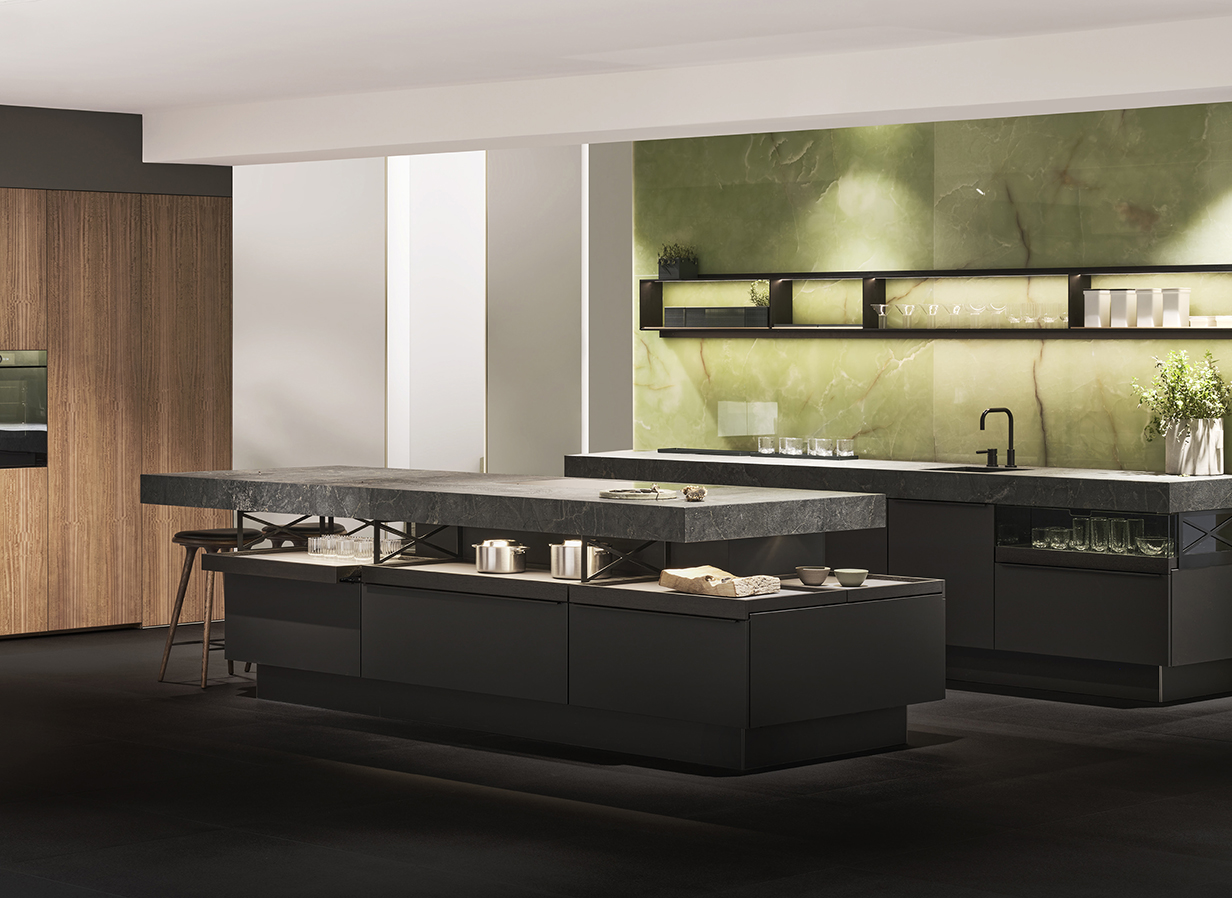 Cu bucătăriile Poggenpohl +VENOVO, spațiul din bucătărie este complet reorganizat. Pe vertical, mobilierul este stratificat, în timp ce suprafața este perfect netedă, creând o tranziție naturală între gătit și restul activităților.