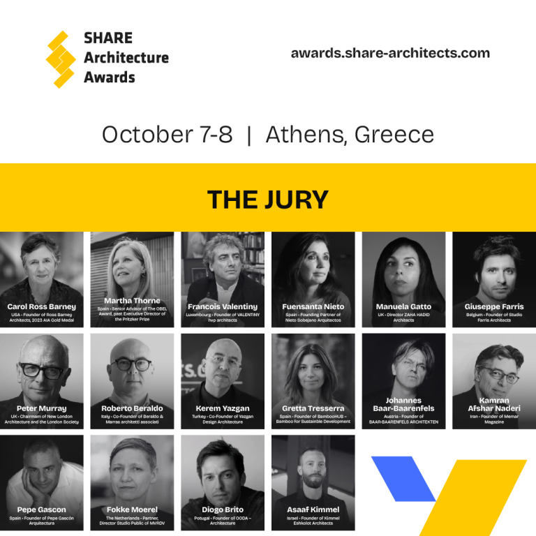 The registration period for the Annual SHARE Architecture Awards closes on 31 of May. The jury will present a short list of nominations on July 1st and winners of the SHARE Architects Awards will be announced on 8 October in Athens. One prize will be awarded for each of the 6 defined categories, as well as the special “Overall Winner” award which represents the highest honors of the competition.