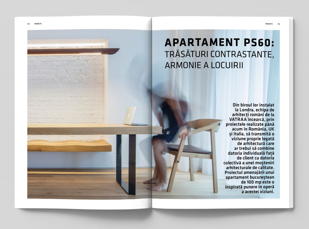 PROIECTELE acestui număr întâmpină silueta graţioasă a imobilului de birouri Ana Tower proiectat de Westfourth Architecture, rezonează la compoziţia spaţială originală a casei Doja 36 din Cluj semnată Tecon. Apoi, două apartamente, PS60 Vatraa şi AA Bogdan Ciocodeică Studio, îşi dezvăluie universul interior şi personalitatea cult imaginată, iar Kané şi COS demonstrează că, în materie de amenajări interioare, suntem fără îndoială europeni şi la zi cu cele mai noi tendinţe şi atmosfere.