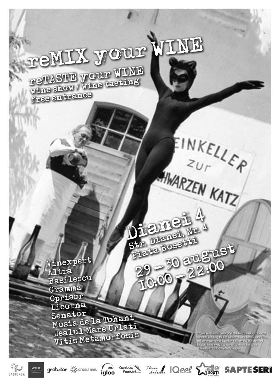 Dianei 4 este recunoscut deja ca fiind unul dintre localurile din București care acordă o importanță deosebită listei de vinuri, pe care a îmbunătățit-o și diversificat-o pe parcursul anilor astfel încât să acopere o gamă cât mai largă de soiuri, zone și metode de vinificare. Cramele Alira, Basilescu, Gramma, Oprişor, Senator, Licorna,Moşia de la Tohani, Dealu Mare Urlați, Vitis Metamorfosis şi importatorul Vinexpert au răspuns invitației şi vor avea câte un stand unde se pot degusta şi cumpăra vinuri.   Pentru prima ediție reMIX your WINE / reTASTE your WINE brunch-ul de fiecare weekendva fi adaptat exclusiv pentru o asociere perfectă cu prezentarea de vinuri. Astfel, vizitatorii pot însoți degustarea de vinuri cu fructe, brânzeturi și mezeluri tradiționale românești produse la Conacul Secuiesc , jud. Alba și Păstrăvăria Albota, jud. Sibiu.