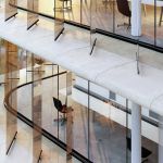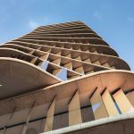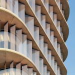 Fațada clădirii este definită de plăcile proeminente ale dalelor planşeelor, extinzându-se mult deasupra planului vitrat, pentru a deveni console protectoare şi adevărate parasolare. O serie de shed-uri realizate din sticlă laminată, semi-transparentă oferă un al doilea strat de protecție, sporind dinamismul turnului când soarele lovește această piele izolatoare multifaţetată.
