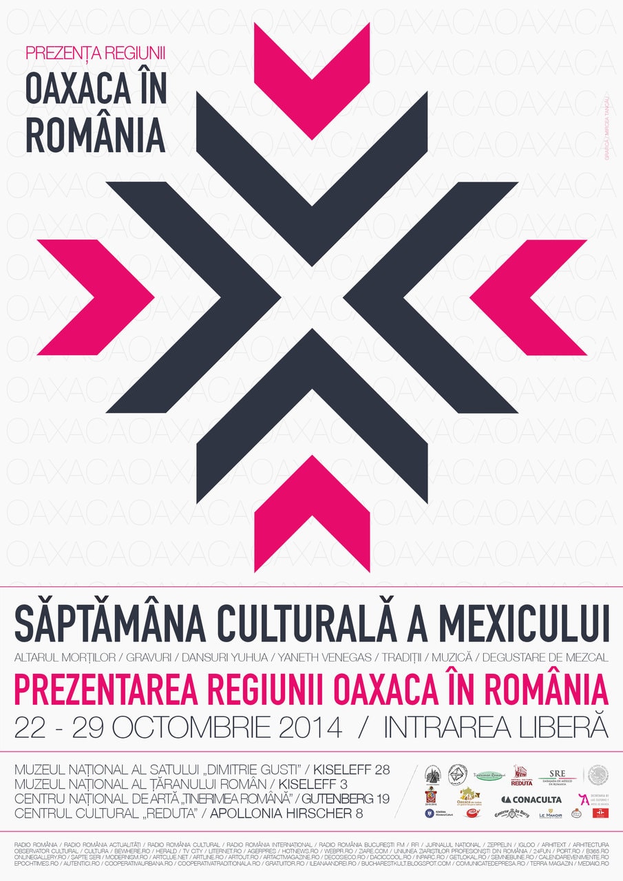 Ambasada Mexicului și Muzeul Național al Țăranului Român vă așteaptă miercuri, 29 octombrie 2014, ora 18.00, la Studioul Horia Bernea, la Ceremonia de închidere a evenimentului Săptămâna Culturală a Mexicului: Prezentarea Regiunii Oaxaca în România.