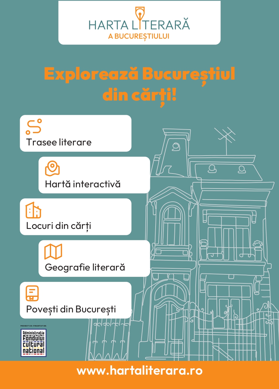 Harta Literară este un proiect cultural co-finanţat de Administrația Fondului Cultural Național. Proiectul nu reprezintă în mod necesar poziția Administrației Fondului Cultural Național. AFCN nu este responsabilă de conținutul proiectului sau de modul în care rezultatele proiectului pot fi folosite. Acestea sunt în întregime responsabilitatea beneficiarului finanțării.