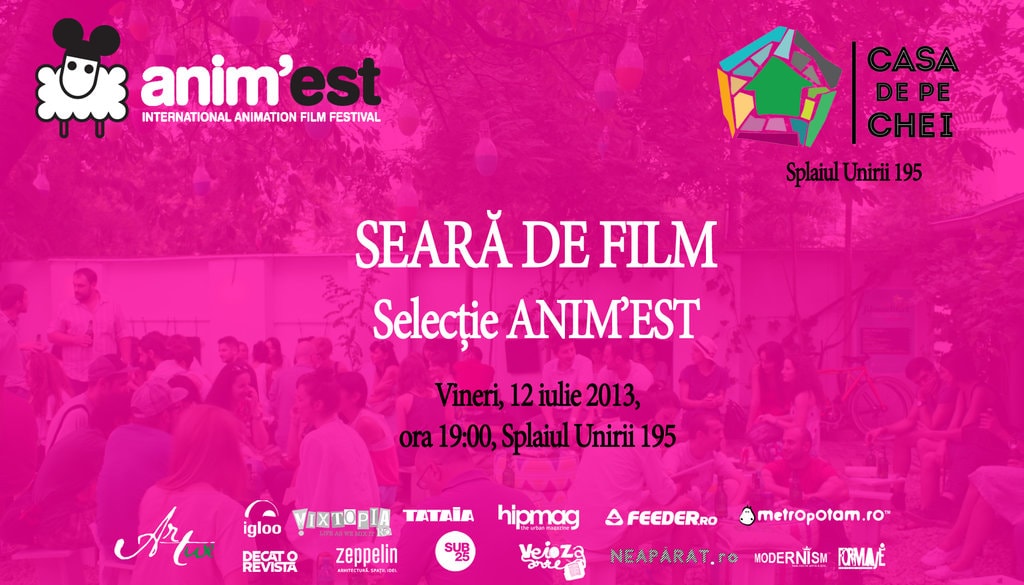 Vineri, 12 iulie, după o săptămâna plină, ne relaxăm cu filme marca ANIM’EST şi cu bere rece. De la ora 19:00 şi până târziu, deschidem gradina Casei de pe Chei pentru 12 filme selectate pe sprânceană. Proiecţia scurt-metrajelor începe la ora 21:30, iar intrarea este liberă.