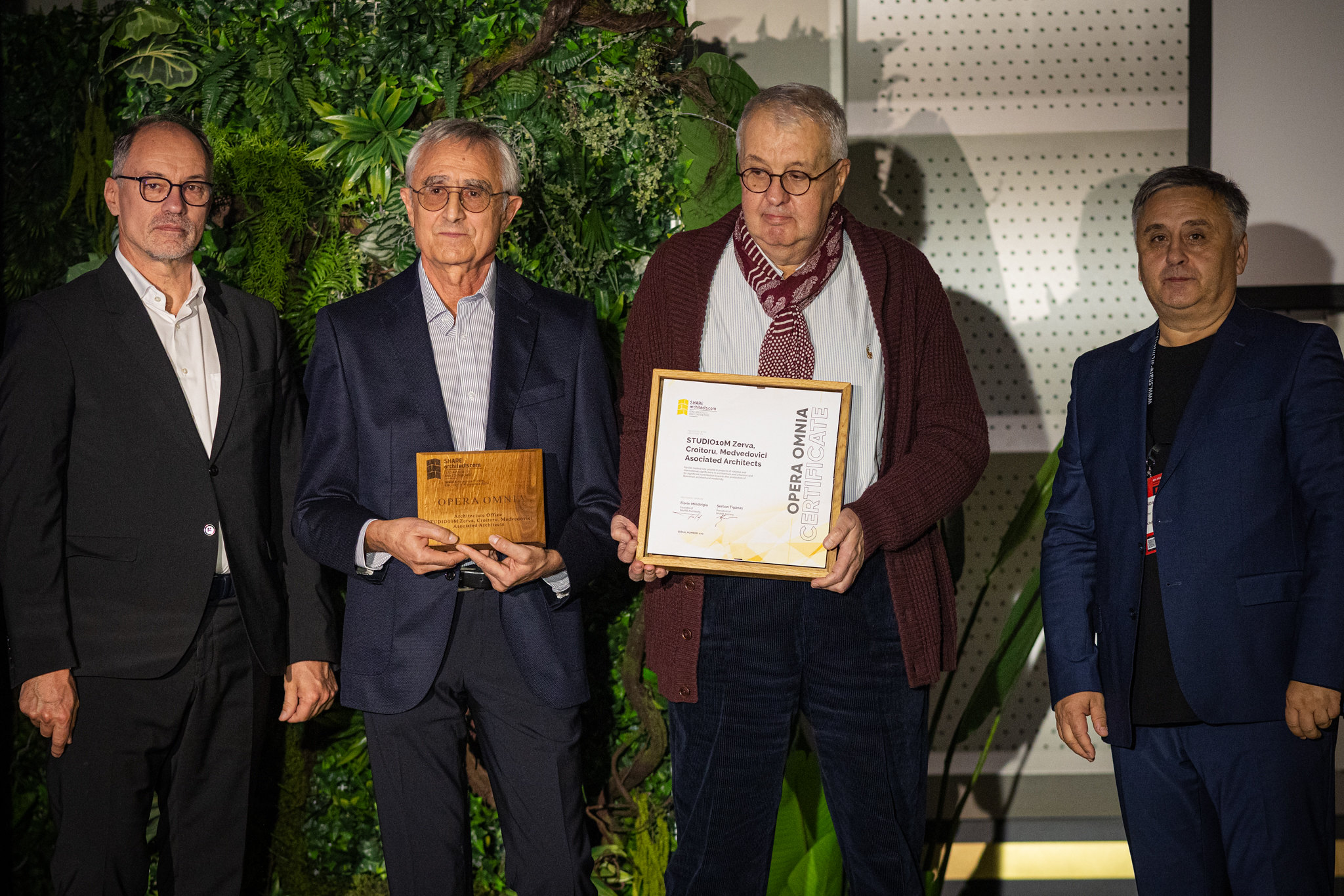 Unul dintre cele mai emoționante momente ale evenimentului a fost ceremonia de acordare a Premiului SHARE Opera Omnia, premiul de excelență pentru întreaga activitate fiind oferit firmei de arhitectură STUDIO10M Zerva, Croitoru, Medvedovici Associated Architects. Distincția, înmânată de Florin Mindirigiu, fondator al SHARE Architects Society, și Șerban Țigănaș, președinte onorific, a fost oferită studioului din București “pentru realizări remarcabile în arhitectură și rolul lor în dezvoltarea unor proiecte arhitecturale importante de-a lungul carierei lor.” Distincția a fost acceptată de fondatorii studioului, Florin Medvedovici și Adrian Zerva. Cei doi arhitecți “sunt acum celebrați pentru ceea ce au realizat împreună cu echipele pe care le-au format, coordonat și mentorat,” a exprimat Șerban Țigănaș într-un Laudatio adresat audienței și celor doi fondatori.