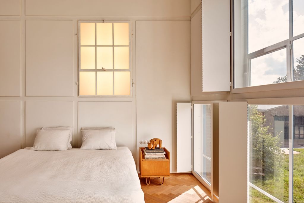 Un sistem de obloane minimaliste, de culoare albă, creat tot de proprietar în atelierul său, ajută la reglarea cantităţii de lumină din interior şi a nivelului de deschidere a locuinţei faţă de vecinătăţi. În fiecare cameră se simte respectul faţă de istoria clădirii, dar şi dorinţa de a oferi un maximum de funcţionalitate, necesar unui stil de viaţă dinamic.