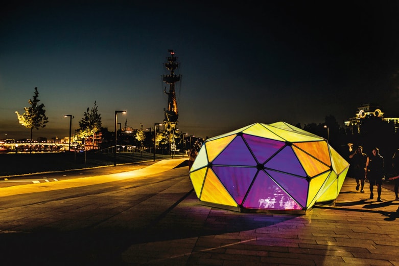 În cadrul Nopţii Muzeelor din Moscova din 2014, Marco Hemmerling, studio german de „design spaţial” după cum se autointitulează, a creat un caleidoscop urban, par­te a proiectului Lexus Hybrid Art şi punct terminus al unei pa­rade a curatorilor şi a tuturor artiştilor care au participat la Noap­tea Muzeelor. Fiecare faţă este acoperi­tă cu un mate­rial care re­flec­tă background-ul din jur şi transformă culoa­rea lu­minii în cele şapte nuanţe ale curcubeului. Şi, asemenea unui caleidoscop, ale cărui imagini nu sunt niciodată la fel, Cityscope se schimbă radical în funcţie de momentul zilei şi de mişcarea din jur. www.marcohemmerling.com