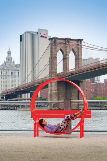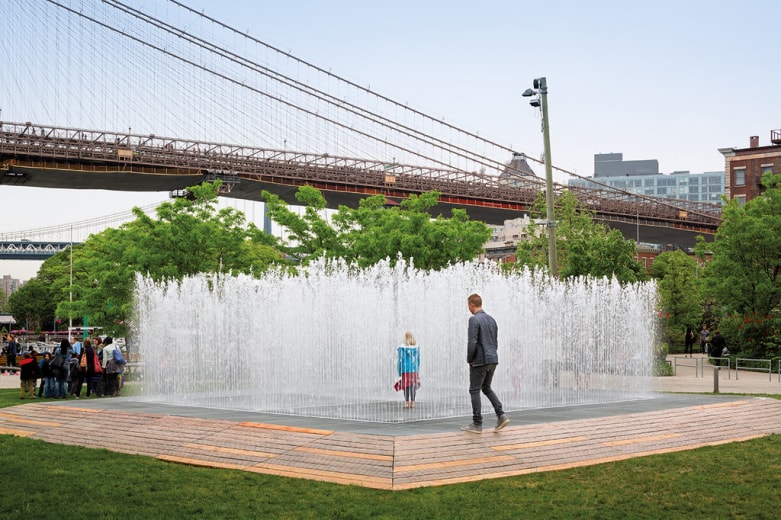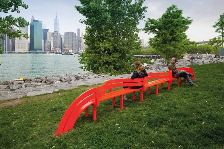 Între 17 mai 2015 şi 17 aprilie 2016, Public Art Fund prezintă în Brooklyn Bridge Park o expoziţie în aer liber a artistului danez Jeppe Hein. Please Touch the Art pune accentul pe interacţiunea cu publicul şi pe folosirea de către public a creaţiilor, mai ales că 16 dintre cele 18 componente ale expoziţiei sunt, nici mai mult nici mai puţin, decât Bănci Sociale Modificate: 16 obiecte urbane perfect funcţionale şi, în acelaşi timp, piese excentrice de artă, rezultate prin alungirea, curba­rea, torsionarea sau rotirea unei secţiuni clasice, comune, de bancă, şi vopsite într-un roşu-portocaliu vibrant. Please Touch the Art este completată de două instalaţii care pun în discuţie calitatea concretă/efemeră a formei, şi anume: o instalaţie de apă – o serie de „camere” cu „pereţi” din jeturi de apă care apar şi dispar sistematic, pe parcursul zilei – şi un labirint de oglinzi – amplasat pe Greenway Terrace, care fracţionează panorama naturii din jur şi a siluetei Manhattanului din depărtare. Lamelele verticale, de lăţime egală, dar de înălţimi diferite (imagine inspirată de asemenea din cea a oraşului), sunt realizate din inox lucios şi dispuse la distanţă egală, sub forma unei spirale din trei cercuri concentrice. www.jeppehein.net