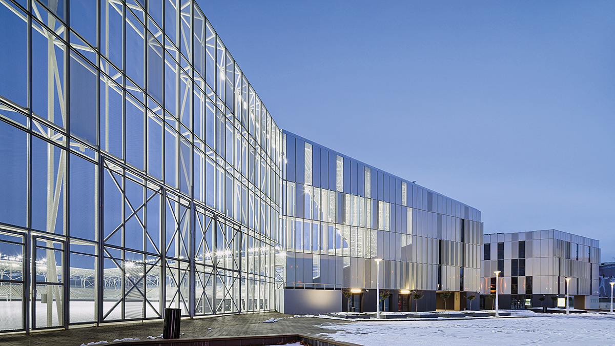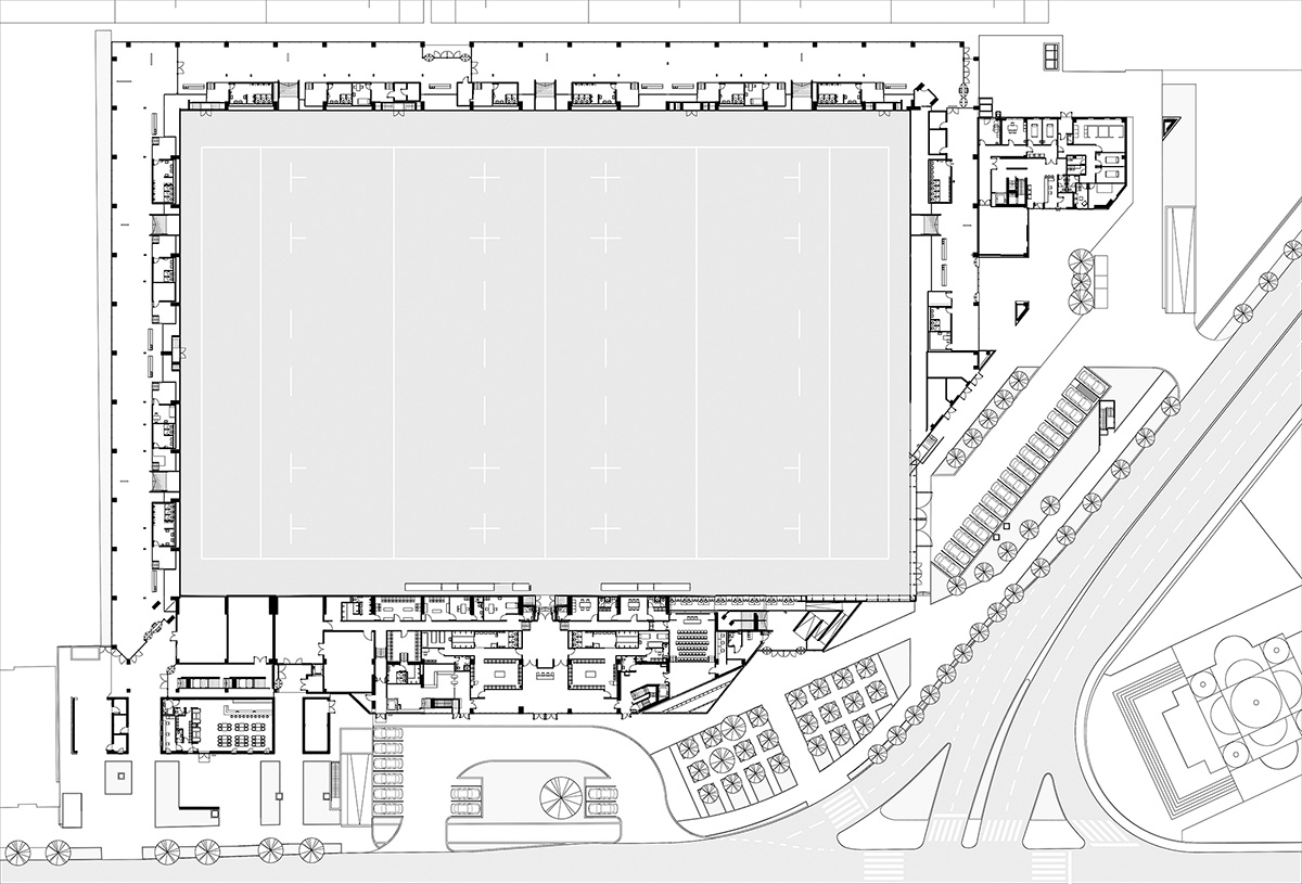 Un stadion este, într-un fel, o vietate de mare anvergură, marcată de momente diferite şi pulsaţii la fel de variate. Pare de necuprins, însă jocul continuu cu transparenţa a generat aici o compoziţie unitară. Cinci părţi alcătuiesc ansamblul: stadionul propriu-zis şi tribunele; corpul principal pentru sportivi, oficiali şi media; hotelul cu baza de recuperare a sportivilor; un muzeu cu spaţii pentru evenimente; parcajul subteran.