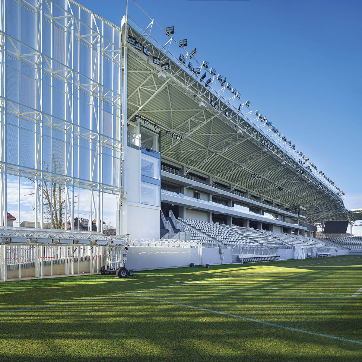 PROIECT: Stadionul Național de Rugby „Arcul de Triumf”; ADRESĂ: Bulevardul Mărăști 18-20, sector 1, Bucureşti; CAPACITATE: 8.155 locuri; SUPRAFAȚA TERENULUI: 37.626 mp; SUPRAFAȚA CONSTRUITĂ DESFĂȘURATĂ: 21.852 mp; ARHITECTURĂ: Dico şi Ţigănaş birou de proiectare; ȘEF DE PROIECT: Levente Kornis; ECHIPA DE PROIECTARE: Florin Dico, Șerban Ţigănaş, Claudia Focşa, Sorin Trif, Denisa Petruş, Bogdan Dico, Oneţiu Ciprian, Lorant Miklos, Adina Merloi, Alexandru Zaharia, Alexandru Trofin, Andrei Spoială, Carmen Brădăţeanu, Sabina Bolboacă, Marta Fodor; STRUCTURĂ: Dico şi Ţigănaş birou de proiectare – Kovacs Levente, Alexandru Bălan, Sorin Vasile, Ioan Iov, Ciprian Cătinean, Marius Filipan, Dan Drăguş, Marius Popescu, Ioan Roşchiţă; INSTALAȚII ELECTRICE: Dico şi Ţigănaş birou de proiectare – Liviu Petreuş, Samuel Bunea; INSTALAȚII SANITARE ȘI HVAC: General Instal Comp; ARHITECTURĂ PEISAGERĂ: Dico şi Ţigănaş birou de proiectare, GAZON: hibrid; FINALIZAT: 2020; PREMII: Premiul secțiunii „Clădiri industriale, reprezentative, turistice și pentru sport/loisir” (ex aequo) la BNA 2021
