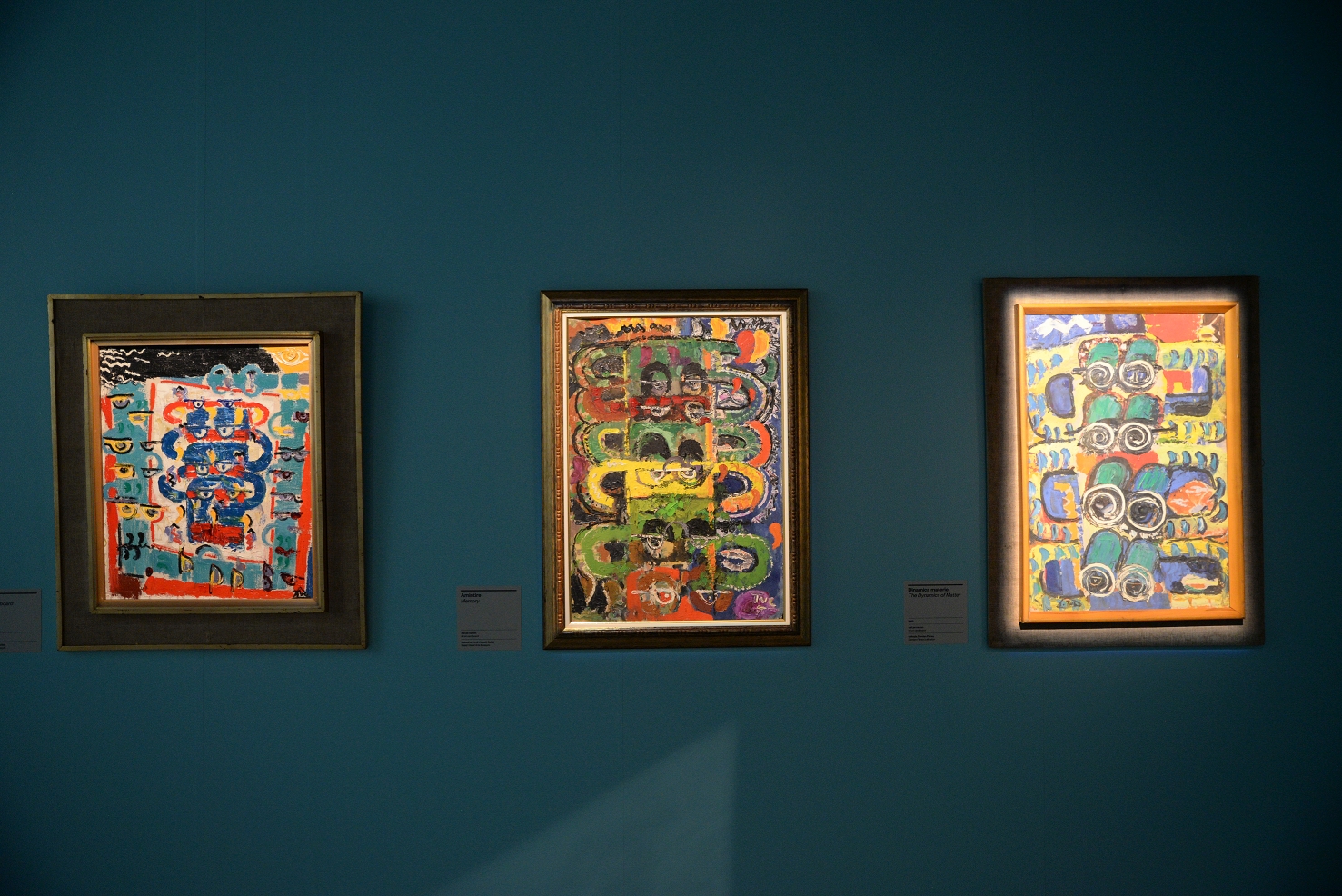 Amânând să trec la subiect (pentru că subiectul e greu), remarc relieful textului curatorial – alert, exaltat, provocator, subiectiv, dar mai ales util, în dialog cu conținutul expoziției și cu așteptările (și întrebările) vizitatorului. În orice caz, probabil cel mai bun din ce am citit la Art Safari vreodată. Expoziția reconstituie, analitic și cronologic, devenirea lui Ion Țuculescu, prin puncte de continuitate și de ruptură, prin înlănțuirea etapelor de creație (cele timpurii fiind probabil necunoscute publicului larg) și a temelor predilecte, prelucrate hiperbolic și intens, într-o viziune profund originală – în special tematica folclorică, arhetipurile, extazul mitologic.