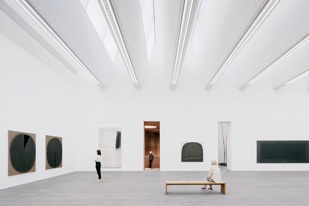 Interioarele expoziționale noi sunt încamerări albe, uniforme, cu dimensiuni bine temperate, care lasă să se întrevadă prin câteva deschideri desfășurarea de forțe spațiale ale volumelor și structurilor vechi. Articulațiile dintre corpurile de clădire sunt elemente-cheie care intermediază trecerea.