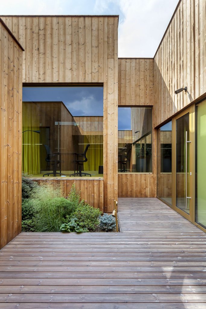 CLT-ul, supranumit și „noul beton”, este un material rezilient și sustenabil, care a stat la baza construirii acestui sediu de birouri cu caracter inedit. Amplasată în pitorescul rural din Crișana, clădirea oferă o relație intimă între peisaj și interior, propunând un spațiu de lucru flexibil și adaptat cerințelor de lucru ale unui mediu creativ.
