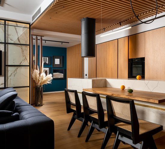 Anterioară Următoare AMENAJARE DE INTERIOR: Jooca Studio TEXT: Anca Rotar FOTO: Katya ZolotukhinaAcest proiect transformă principalele spații ale unui apartament dintr-o zonă intens circulată din Capitală într-o oază de calm și liniște. Stilul de amenajare este unul modern, minimalist, cu influențe preluate din stilul industrial, explicit urban,